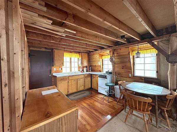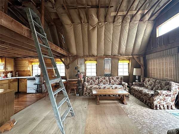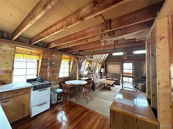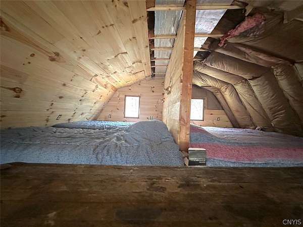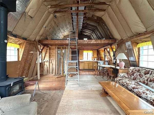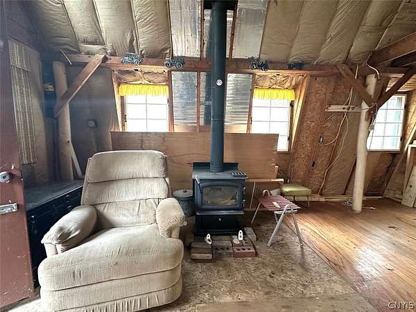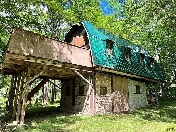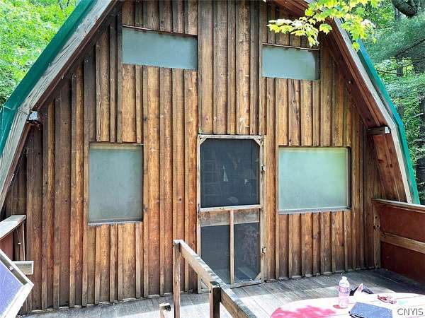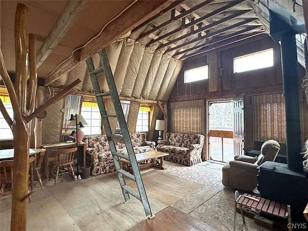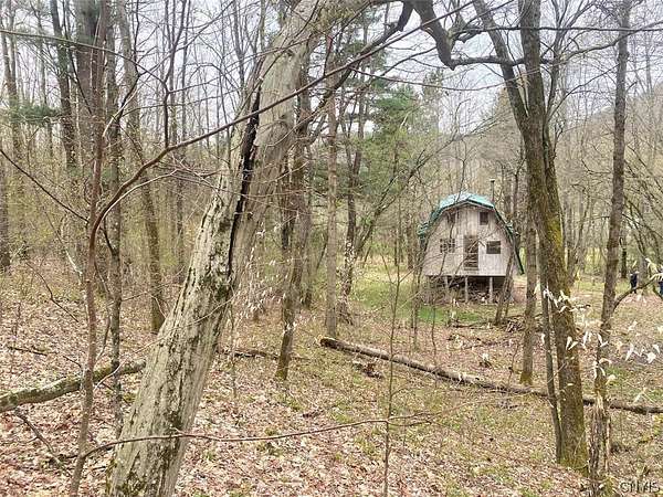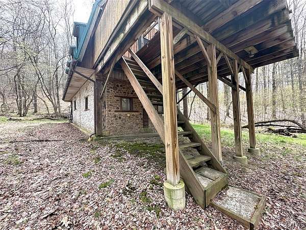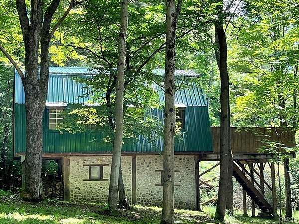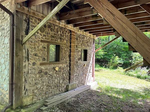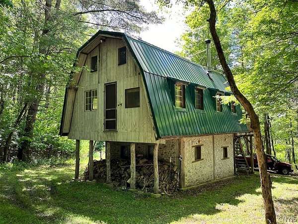 Tucked away in the quiet countryside of Richburg NY, this 11.8 acre wooded property offers the perfect blend of privacy, natural beauty, and off-grid living. The land has been in the same family for nearly 60 years and is rich with mature hardwoods, including maple trees ideal for producing your own maple syrup, as well as mature cherry and other valuable species. Having never been logged, the forest remains pristine and full of character making it a haven for nature lovers and outdoor enthusiasts. At the heart of the property sits a thoughtfully crafted off-grid cabin built entirely by hand by the second generation. The partially finished cabin features a spacious deck overlooking the surrounding woods, a vaulted ceiling, and a loft space. Inside, a wood stove provides warmth, while the structure itself showcases unique craftsmanship including hand-hewn beams salvaged from historic barns and a truly distinctive foundation constructed using a wood stack wall technique which is short logs set like bricks and held together with mortar. The logs were sourced directly from the property. A new metal roof was installed five years ago. The kitchen and bathroom are finished in milled ash wood. The cabin is wired for electricity and can have a generator connected offering flexibility for modern conveniences while maintaining an off-grid lifestyle. Water can be obtained from a natural spring and transferred to a reservoir located in the lower level where a camper-style pump delivers it to the living space. Electric, water and internet are available at the road. An existing survey is available, and surface rights convey. The property is being sold as-is, with furnishings conveying. Located about 20 minutes from Olean and Wellsville, and approximately 1 hour 40 minutes from Buffalo. Whether you're seeking a private weekend getaway, or a self-sufficient homestead, this property delivers a rare opportunity to own a piece of untouched woodland with a one-of-a-kind, family-built cabin already in place.