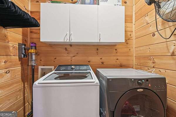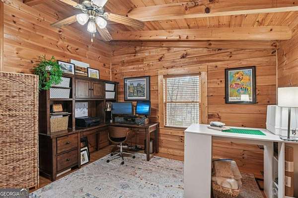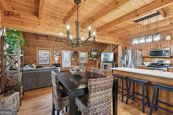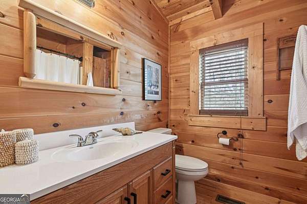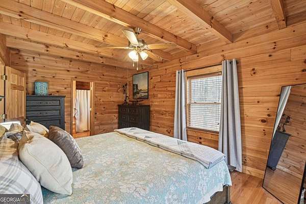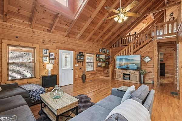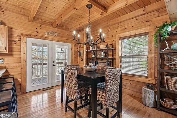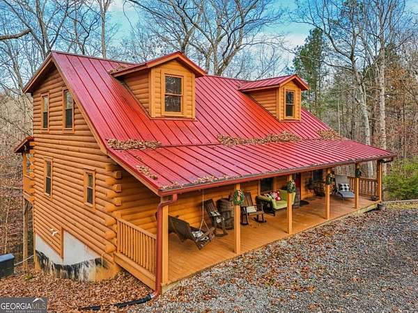 Enjoy peaceful mountain living in Cherokee County on 2.19 private, wooded acres with no HOA! This charming log home offers vaulted ceilings, a loft, tons of natural light, and quartz kitchen countertops with newer SS appliances (2023) plus a new washer (2025). Major systems are updated, including HVAC ( 5 yrs), metal roof ( 8 yrs), tankless water heater, spray-foam insulation, and a recently serviced septic system. Enjoy custom blinds throughout. Relax outdoors on fully covered front and back decks, or retreat to the private deck with a Swedish barrel sauna. Wildlife sightings are common, and morning light streams through the vaulted windows. A stream runs on the property for added natural charm! The oversized drive-under garage and basement level offer excellent flex space for a workshop, gym, or storage, and there's plenty of parking-including a full gravel pad for a boat, trailer, or RV. A leased whole-home generator (transferable) provides peace of mind, and multiple internet options are available thanks to a nearby T-Mobile tower. Located on a quiet cul-de-sac with large lots and minimal traffic, this home feels tucked away yet remains close to Canton, Woodstock, Cartersville, Wilderness Camp Marina (Lake Allatoona), major highways (I-75 & I-575), and a popular winery right across the main road. Under an hour to Atlanta for commuters or airport access. A perfect blend of privacy, convenience, and mountain-style living. Don't miss your opportunity - book your tour today!