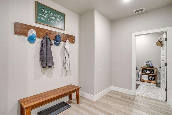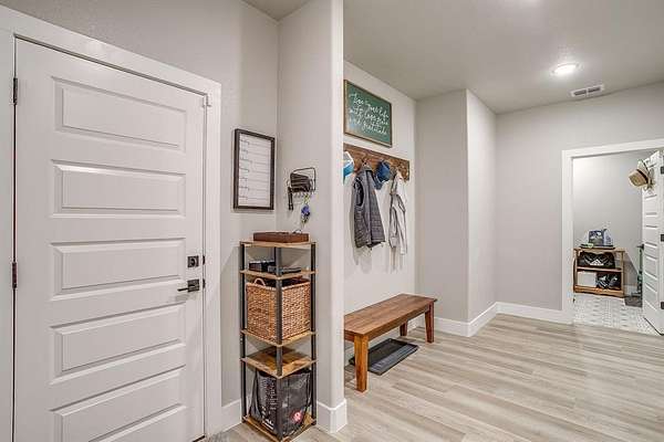 This open-concept floorplan offers a spacious living area with a fireplace that is both gas and wood-burning. The home includes a large mudroom that flows seamlessly into the laundry room, enhancing functionality. The primary bedroom is generously sized with a walk-in closet, and the split-bedroom layout provides comfort and privacy for all.