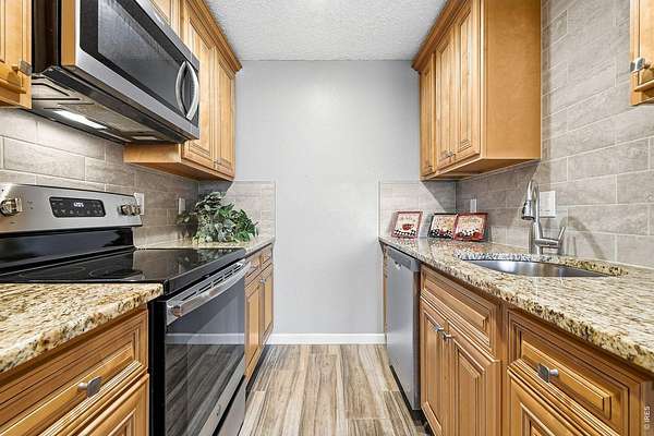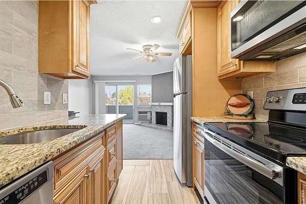 Newly remodeled1 bedroom/1 bathroom condo located on the second floor of the desirable Remington Post community in North Boulder. This secure locked building offers elevator access and with a carport and extra storage closet. Inside, the open floor plan offers a bright, airy living area that opens to a private balcony with scenic foothills views to enjoy your morning coffee. Remodeled kitchen with granite countertops, butternut cabinets, stainless steel appliances and LED lighting. The home is light, clean, and well-maintained, with newer sliding glass door leading to the balcony that brings in abundant natural light. All appliances are included, and tasteful updates throughout make it ready for immediate occupancy. Remodeled full bathroom with custom vanity and marble tiled shower/bath. The layout provides both a sense of openness and functional living space. Wall A/C unit, as well as ceiling fan. Residents of Remington Post enjoy a wide array of HOA amenities, including a heated salt water indoor pool, sauna, updated clubhouse, exercise room, tennis courts, outdoor basketball court, and secure building access. The nearby Howard Huston Park and close-by trail system offer easy access to outdoor recreation. Conveniently located near grocery store, Fitness Center, shops, coffee houses, and popular dining options such as The Cork, Vics Coffee House, local sushi restaurant. The property offers quick access to Foothills Parkway and the Diagonal Highway for easy access to Denver and Longmont. There is a newly completed bike trail close-by for enhanced mobility throughout the area. This bright and welcoming condo offers amazing value within the city of Boulder, combining comfort, location, and outstanding community amenities in one of Boulder's most enduring and desirable neighborhoods.--