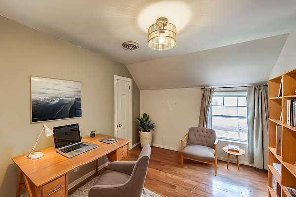Rich in character, the home features 3 bedrooms and 1.5 baths, with thoughtfully maintained interiors that reflect its heritage. The main level includes a spacious den with fireplace, formal living room, dedicated dining room, kitchen, and a convenient half bath with utility/laundry space. Upstairs, you’ll find the primary bedroom along with two additional bedrooms and a full bath.