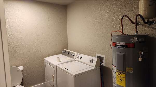 - Dishwasher, Dryer, Electric Water Heater, Gas Range, Microwave, Microwave Hood Fan, Plumbed For Ice Maker, Washer, Water Heater