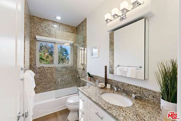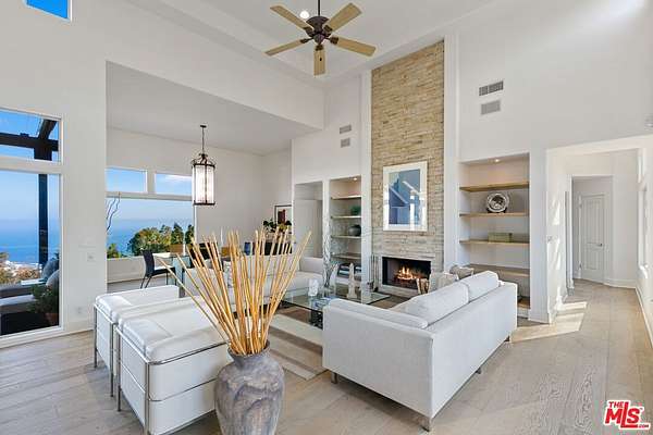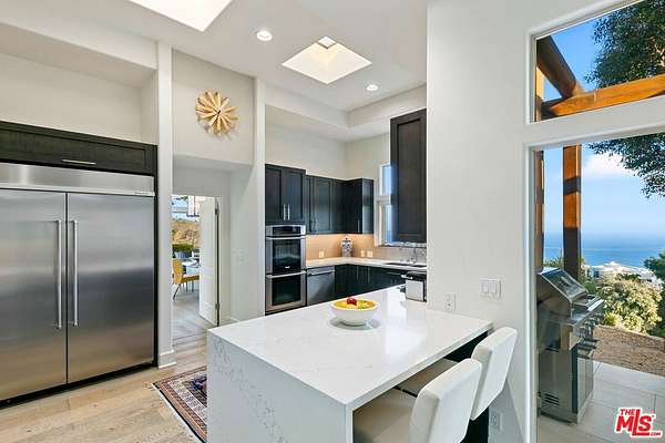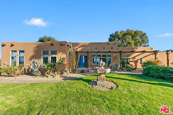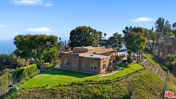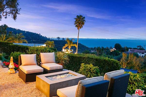 Introducing this exceptional Santa Fe-Contemporary style Malibu retreat with sweeping ocean views and coveted La Costa Beach Club rights. Set on a private 1.57-acre promontory 600 feet above the Pacific with sweeping 270 degree views, this fully gated estate offers a rare convergence of privacy, architectural integrity, and natural beauty. Every detail has been thoughtfully curated to embrace its spectacular setting, with panoramic vistas stretching from Palos Verdes and the Queen's Necklace to Catalina Island, the Santa Monica Pier, and the surrounding canyons. Framed by meticulously landscaped, drought-tolerant gardens and a manicured grassy lawn, the home has been extensively remodeled and combines contemporary living in a peaceful mountain setting. Enter through a dramatic 200-foot driveway to the beautifully designed single-level home, featuring soaring 10- to 16-foot ceilings, clerestory windows, and walls of glass that invite natural light and unfolding ocean views from nearly every room. The open-concept living spaces are anchored by a great room with a newly built slip stone fireplace and custom walnut display shelving, seamlessly flowing into the dining area. French doors open to a backyard oasis featuring a 40' Italian porcelain patio with a pergola, gravel fire pit terrace, al fresco dining area, and a sunken citrus gardenperfect for entertaining. The chef's kitchen boasts Columbia custom cabinetry, a waterfall-edge Pental quartz island with a breakfast bar, and top-of-the-line appliances including a 48" KitchenAid refrigerator, Bosch gas cooktop, Electrolux double ovens, and a Superior wine cabinet. There is an adjoining media room with a built-in 68" flatscreen and exterior access to a barbecue patio. The spacious primary suite enjoys head-on views of the Pacific and sparkling city lights, with direct patio access, a large walk-in closet, and a spa-inspired bath with a double vanity, shower, and soaking tub. There are two additional guest bedrooms with stunning mountain views, including one currently set up as an office. Additional amenities include a Sonos surround sound system, engineered French White Oak flooring, a security system with cameras, a two-car garage with epoxy flooring, and ample parking. Enjoy an exclusive deeded membership to the La Costa Beach Club and tennis courts, offering the ultimate in resort-style Malibu living. The property also includes a deeded road membership with access via a guard-gated private road, providing a direct route to PCH in just minutes. Ideally located in Eastern Malibu with convenient access to Santa Monica and the Westside, beaches, hiking trails, and more. This is a one-of-a-kind property with unparalleled privacy and refined design in an unmatched Malibu setting! There was previously a 1 bed / 1.5 bath detached guest house that was lost in the Palisades fire.