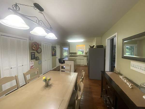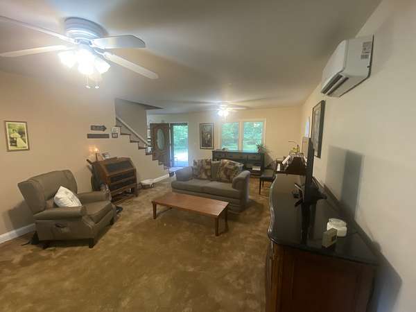 Private Country Retreat. Experience the perfect blend of comfort and seclusion with this modified Mansford style home situated on 14.8 private acres featuring creeks, ponds and woods. This well-maintained property offers 3 bedrooms, 1.5 baths, along with spacious well-lit den complete with wood-burning stove for cozy evenings. The kitchen includes all appliances, an island and combination dining area ideal for everyday living or entertaining. Enjoy the outdoors from the large covered back patio overlooking the peaceful natural surroundings. Additional features include a detached garage/workshop with oil pit, small workshop/storage building providing ample space for equipment or hobbies. There is also a hot house/greenhouse and a garden spot. Seller is offering home warranty for buyer.
