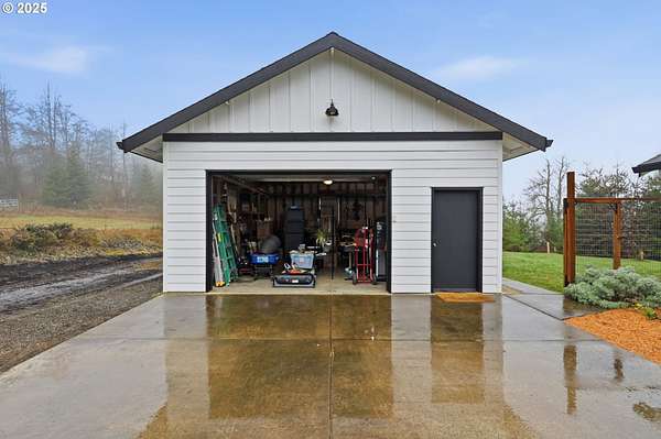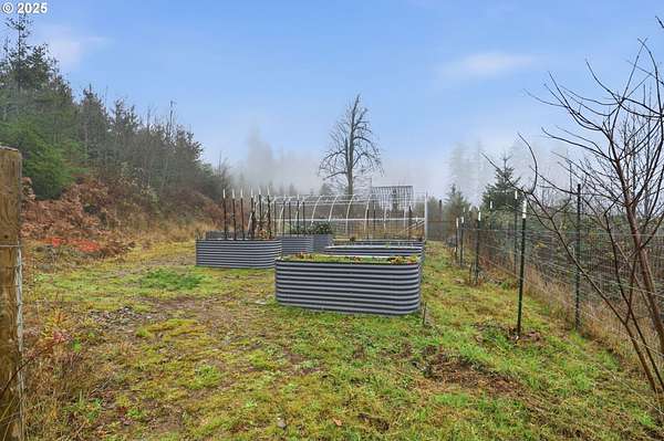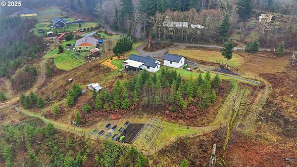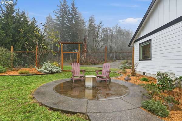 Welcome to this beautiful 3-bedroom, 2-bathroom home situated on just over 8 private, sloped acres of wooded land in Yacolt. Inside, the bright, open-concept floor plan is instantly inviting, with vaulted ceilings and abundant windows that fill the space with natural light and showcase serene year-round tree views. The property is an outdoor enthusiast's and homesteader's dream. It features invaluable direct river front access and a highly productive outdoor setup, including an established orchard, ready-to-use raised garden beds, a functional chicken coop, and a large hoop house for extended-season growing. All of this is protected within a fully enclosed, deer-fenced yard. The beautiful outdoor patio with a view is perfect for relaxation, and the spacious 20x24 detached garage provides excellent secure parking and outstanding potential for a dedicated workshop