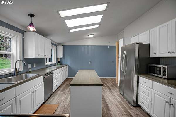 - High Ceilings, Laundry, Skylight, Vaulted Ceiling, Wood Floors