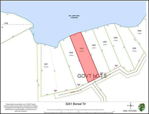 From Longville Go south on State 84 6.3 miles, turn right on HWY 11 go 1.6 mile turn left on to 6th AVE NW go .1 miles turn on 32nd Str NW go .4 miles turn on Boreal Trail NW to Sign on left