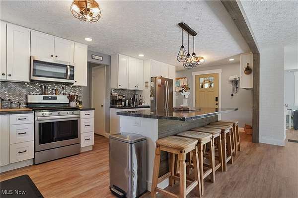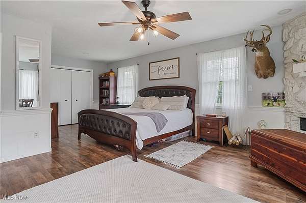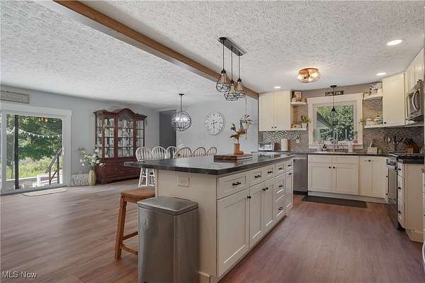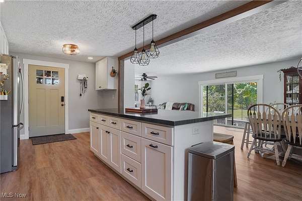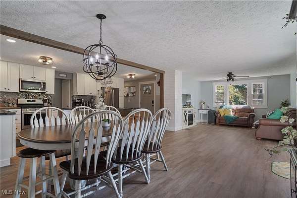 Welcome to 3241 Grill Rd, a beautifully updated ranch on three parcels totaling approx. 5.3 acres, complete with a private pond and mature trees. This 4-bedroom, 3-bath home offers over 2700 sq ft of finished living space, blending outstanding modern upgrades with farmhouse charm. The exterior showcases board and batten siding, black metal roof, stone accents, and rich wood trim, with a covered front porch and spacious concrete and stone patio ideal for outdoor living over looking the serene pond and wooded surroundings. Inside, the open-concept living and dining area flows into a large, modern kitchen with ample cabinetry and prep space. The primary suite features a fireplace, dual closets, and an updated en-suite bath. Two additional bedrooms and a full bath complete the main level. The finished lower level provides exceptional flexibility with a second kitchenette, bedroom with walk-in closet, bathroom, sitting room, and multiple bonus/storage areas-perfect for multigenerational living, guest quarters. Enjoy the peaceful natural setting with plenty of room for recreation, gatherings, and relaxation. This unique property offers the best of country living while remaining conveniently close to amenities. PARCELS INCLUDED IN THIS LISTING: PARCEL/APN : 25-00204 Approx. 233' x 933 & PARCEL/APN : 25-00202 Approx. 96 x 168 Apprx. 5.3 Acres. (PARCEL NO LONGER INCLUDED IN THIS LISTING: PARCEL/APN : 25-00203 Legal Description: TR 18 LOT NW N OF RD 4.950A). Schedule your showing today.