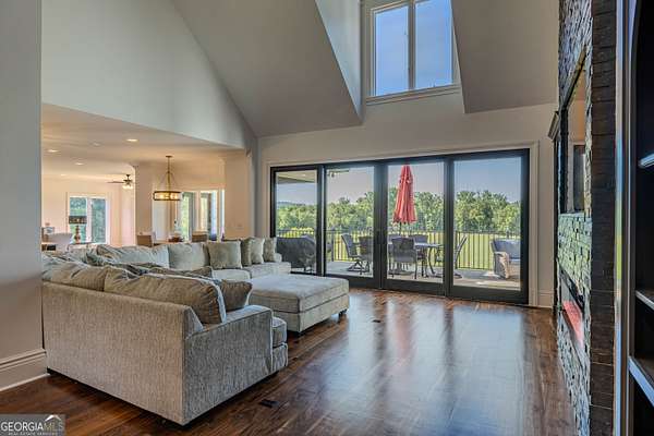Embrace tranquility in this exquisite, meticulously renovated, riverside estate set upon 11.7 acres with 380 feet of private Coosa River frontage. This beautifully maintained brick home is situated to offer sweeping views of level pastures from its elevated vantage point. The 7 bedroom, 5.5 bathroom Horseleg Creek home boasts luxurious upgrades including a spacious gourmet kitchen ideal for culinary enthusiasts, a Sub-Zero refrigerator, 7-inch walnut flooring, ample natural lighting and a master suite designed for ultimate relaxation-complete with a steam shower, heated floors, custom heated bench seating with integrated Bose sound system. The home office/library with custom built-ins and formal dining room showcase the attention to detail and design excellence throughout. Additional conveniences include an existing elevator shaft ready to service all three floors, an advanced vacuum system, and irrigation sprinklers for convenient property maintenance. Entertain effortlessly in the expansive theatre room with in-wall speaker system or on the spacious balcony that overlooks breathtaking pastoral vistas. The basement serves as a second living space equipped with it's own laundry connections, two additional bedrooms, one replicating the primary suite and a thoughtfully designed bathroom with heated tile floors and so much more! Schedule your tour today!