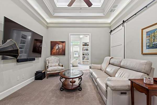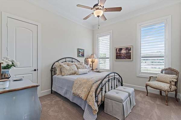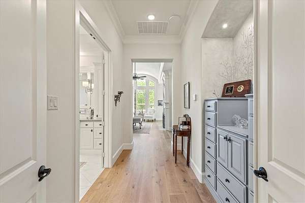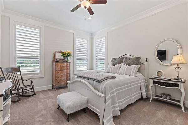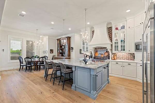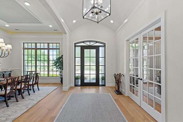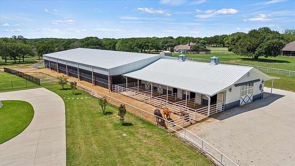 Discover this captivating AG EXEMPT custom built Southern French Country ranch gracefully situated on a tranquil 11-acre property in Cross Roads. This picturesque property offers over 100+ oak trees, a serene private pond, and tranquil setting for horses. Separate gated entrance offers access to the 48x60 barn featuring 5-12x12 stalls with runs, Priefert automatic feeders and Comfort Step floors. Feed Room, Wash Rack with hot and cold water, grooming area, heating and cooling, rubber floored mats, covered patio for storing equipment, and climate controlled Tack Room with bathroom, refrigerator, water heater. 80x140 Indoor Arena with sliding screens. This property also offers 3 turnouts and fully fenced pasture with no-climb, pipe and cable fence. Make your way inside the main residence where you'll be greeted by wide plank hickory hardwood floors leading you into the elegant living room showcasing vaulted wood beamed ceilings and built-in cabinets flanking a gas burning fireplace. This thoughtfully designed layout effortlessly connects the entertainment areas into the fully equipped gourmet kitchen with Top-of-the-line appliances including a Wolf 6 burner gas cook-top, warming drawer, dual ovens, Subzero refrigerator, Quartz counter-tops, prep sink, and 84 inch cabinets with under-mount lighting. The owner's suite is a true escape highlighted by a cozy fireplace, large walk-in closet and a luxurious bath with separate vanities, free-standing soaking tub, expansive walk-in shower with multiple shower heads, and dual water closets. Each bedroom offers ensuite baths and walk-in closets. Additional amenities include a game room, media room with ss speakers, sitting room, built-in workstation, wet bar, large utility room with mud area, and two-2 car over-sized garage with EV charger. Lastly, head outdoors to your peaceful covered patio a picturesque, view, cozy fireplace and grill. Enjoy the gardens, pond with fountain and yard with plenty of space to play and roam!