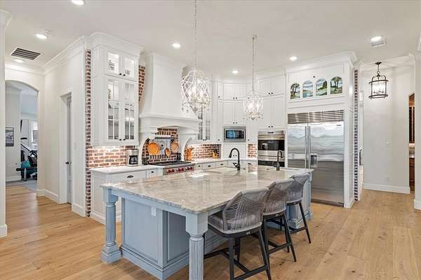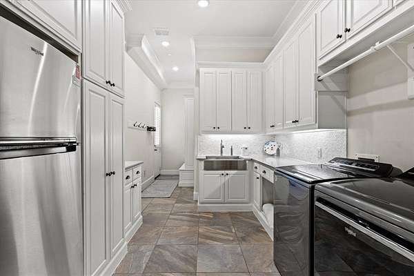 - Built-In Refrigerator, Cooktop, Dishwasher, Double Oven, Garbage Disposer, Gas Cooktop, Ice Maker, Microwave, Range, Refrigerator, Warming Drawer, Washer