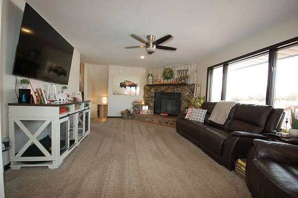 Est $3,046/moHome on the Range - You will thoroughly enjoy rural living at this exceptional 9 acre property located 30 minutes from Sidney or Fairview in Richland County. Whether you like sunrises or sunsets you can enjoy both from the large decks on either side of the house. The home features over 3000 sq ft of living space and has been fully remodeled and updated beautifully. The work is done on this one. There are 5 bedrooms, 3 bathrooms, open kitchen, semi formal dining area, living room with wood fireplace, separate laundry room, home theatre style family room, and lots of storage. Outdoors you will have 9 acres of private space along with a 40' x 60' shop, fencing for animals, wind break, and room for any project that may come along.