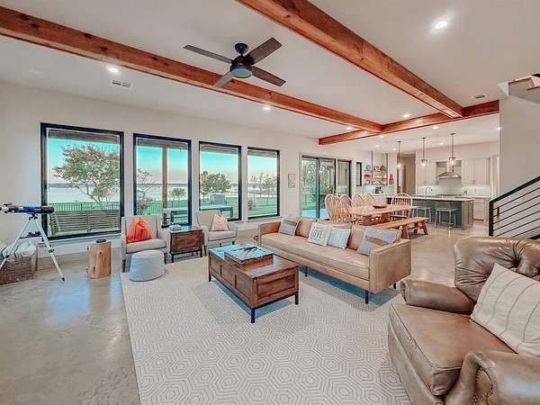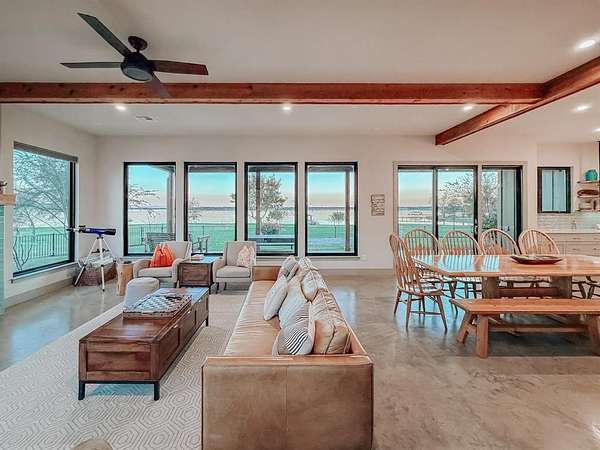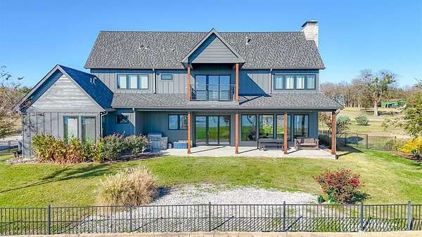 Welcome to an unparalleled lifestyle opportunity on the shores of Richland Chambers Lake, Texas's third-largest inland reservoir and premier sailing basin. Situated on a rare 3.4-acre estate with a phenomenal 480 feet of pristine waterfrontage, protected by a steel retaining wall with a concrete sidewalk. The property is strategically designed to capture ample water views from nearly every room, combining rustic charm with contemporary elegance. This meticulous 2017 custom-built home showcases a chic modern farmhouse design, offering 3,800 sq. ft. of living space, 4 Bedrooms, and 5 baths. The Primary Suite is conveniently located on the main level, while a second, equally spacious Primary Suite is located upstairs, plus a second living-game room, an additional guest room, and a huge bunk room for the kids. Open concept kitchen with gas stove, two ovens and dishwashers, ample cabinet space, and two large pantry areas. The 3-car garage features ample storage, 18-foot ceilings, a pass-through carport, and a circular drive for ease of boat or RV parking. This marine dream features a Boat Dock with two boat slips with custom boat lifts, cradles, and two jet ski lifts. The expansive covered patio creates a true outdoor living area for year-round entertaining and sunset viewing. The backyard is an adventure park unto itself, featuring a custom pirate ship playhouse and an exhilarating zipline that runs toward the lake. This property is the ultimate retreat for multi-generational living, entertaining, and outdoor recreation--all enhanced by the benefit of a highly desirable Navarro County low tax rate.