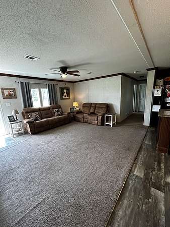 Charming 2019 Mobile Home on 1.5 Acres - Spacious 4 Bedroom, 2 Bath with Large Back Porch . Welcome to this beautiful 2019 mobile home offering the perfect blend of comfort, style, and space. Situated on 1.5 acres of peaceful countryside, this home features an open floor plan designed for both relaxation and entertaining. Inside, you'll find 4 spacious bedrooms and 2 full bathrooms, providing plenty of room for family or guests. The open living, dining, and kitchen area creates a warm, inviting atmosphere, ideal for gatherings. Step outside to enjoy the large covered back porch, perfect for morning coffee, evening barbecues, or simply soaking in the serene views of your property. The expansive yard offers endless possibilities-whether you dream of gardening, adding a play area, or simply enjoying your own private slice of nature. Located in a quiet setting with plenty of room to spread out, this property combines the charm of country living with modern conveniences. Features: 2019 construction - move-in ready 4 bedrooms, 2 bathrooms Open concept living area Large covered back porch 1.5 acres of open, usable land. This home is ready to welcome its next owner-don't miss the chance to make it yours!