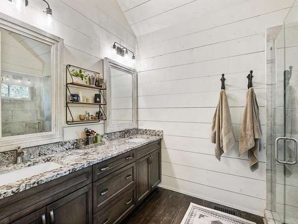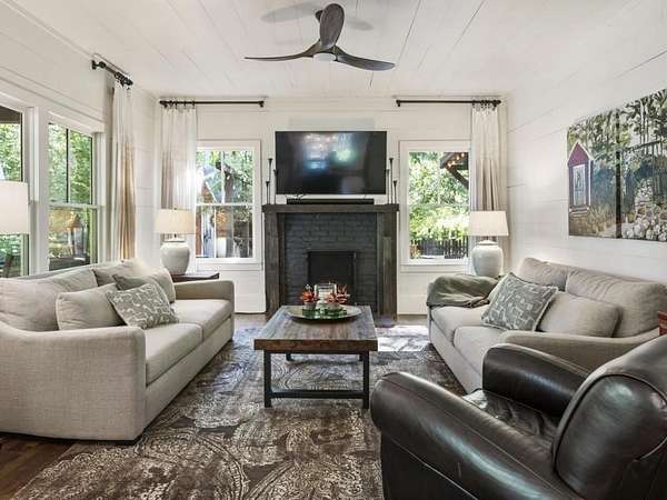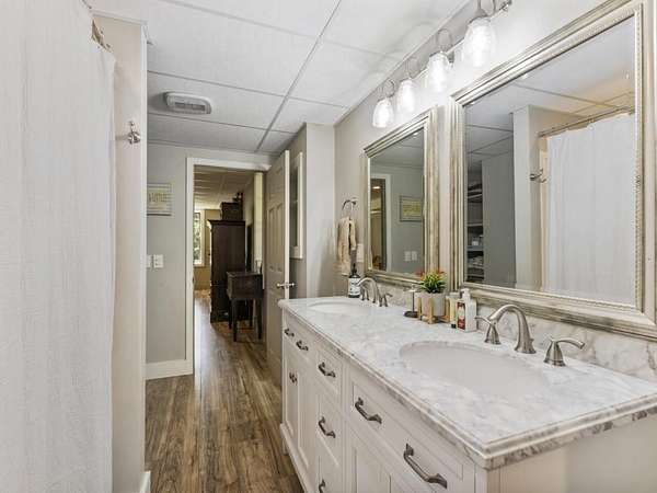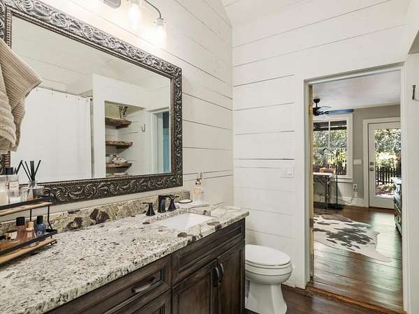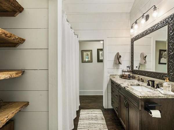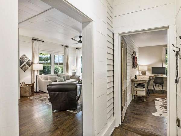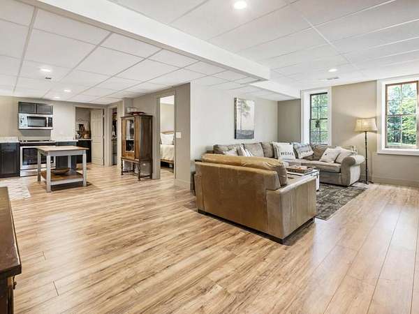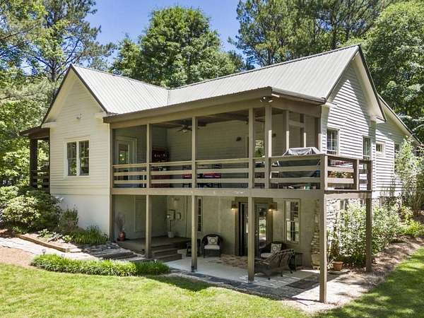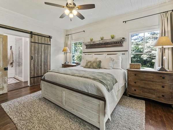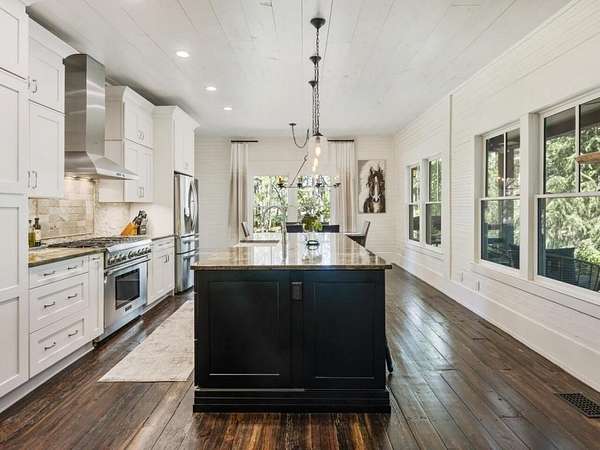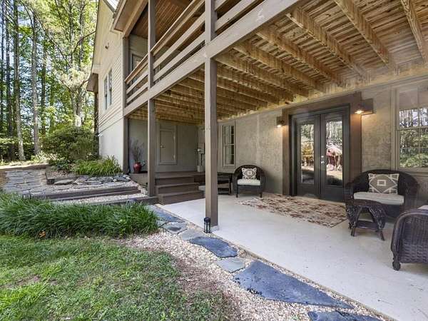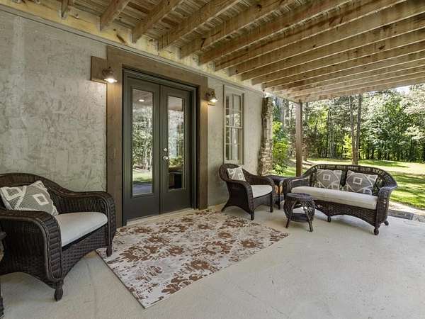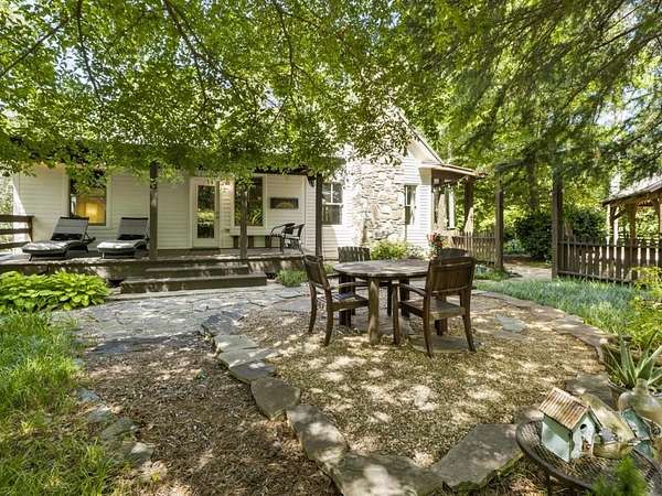 Perfectly situated a sprawling and private 3.36+/- acres, this special home is true to Milton's equestrian heritage and its 1880's character, but has been thoughtfully renovated and completely updated to cater to the needs of modern living. The private approach via the newly paved wrap-around driveway leads you to a peaceful and idyllic setting amongst landscaped and maintained grounds. The large covered front porch is just one of several outdoor spaces you can enjoy for coffee, cocktails, gathering and entertaining, or to simply relax and soak up the beautiful surroundings. A secret garden, patio and outdoor dining space off the front porch serves as an additional private outdoor retreat. Upon entering the double set of front doors, character abounds in the completely updated space. The interior is beautifully appointed with expansive 10+ foot ceilings, original shiplap, original pine floors, an original fireplace gracing the living room, and custom built-ins. The open kitchen boasts an oversized eat-in island with a large farmhouse sink, custom floor-to-ceiling cabinetry, and Thermador range and range hood. A spacious breakfast area off the kitchen is warm and welcoming for everyday dining. From the kitchen you can access several more outdoor spaces, including a covered deck and a separate patio that serves as a grilling area. The primary suite has been entirely reconfigured with a walk-in closet and true ensuite bathroom with dual vanities and luxurious frameless shower. An additional two bedrooms, full bathroom and laundry room complete the main level. The terrace level has been finished with an entire additional living space, complete with a bedroom, full bathroom, kitchen, and laundry room. The terrace level also boasts direct access to the outdoors with yet another covered patio space to enjoy. Outside, you will find two storage shed/workshop spaces and two-car portico amongst plenty of space for a hobby farm if desired. Don't miss the chance to enjoy the idyllic private surroundings all while taking advantage of living nearby restaurants, retail, parks, and award-winning Milton schools.