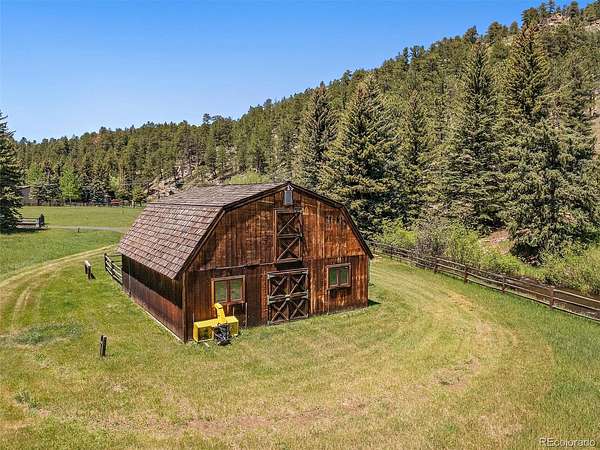 Welcome to the opportunty to live along the iconic Upper Bear Creek Road in Evergreen—where history, nature, and luxury converge to create an unmatched Colorado lifestyle. Set on 28.54 breathtaking acres, this storied estate invites you into a world where every day feels like a retreat. Cast a line in the private stretches of Bear Creek, spend warm afternoons swimming in the indoor pool, relax in one of 6 couryards or explore endless hiking, horseback riding, and creating your own ATV trails right from your doorstep. This is more than a home—it’s a gateway to a lifestyle rooted in adventure, wellness, and connection to the outdoors. Originally built in 1953 and thoughtfully expanded with exceptional craftsmanship, the 4-bedroom, 7-bath residence blends historic charm with Colorado mountain living. Hand-hewn beams, soaring vaulted ceilings, and walls of windows that frame natural views and sunshine. Multiple gathering spaces—both formal and informal—create the perfect setting for entertaining on any scale, complemented by a total of five gas fireplaces, rich oak flooring, and a stunning billiards room with caterer’s kitchen. The chef’s kitchen is expertly appointed with premium Gaggenau appliances, ready to host everything from intimate dinners to unforgettable gatherings. The private bedroom wing provides three spacious en-suite bedrooms, while the secluded primary retreat offers dual baths w/ a vaulted library—an ideal sanctuary to unwind. The attached pool house, surrounded by flagstone accents, offers a tranquil indoor pool, lush landscaping, diving board, gas firepace, 3 courtyard areas and water feature—bringing yearround enjoyment. The 28+ acre outdoors transforms into an addtional entertainer’s paradise and anature lover’s dream.
