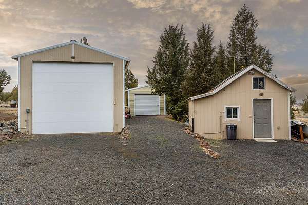 Country Living on Central Oregon's High Desert. Embrace quiet rural life on 1.7 ac in this 3-bed, 2-bath, 1428 Sq Ft mfg home built in 2016. Enjoy open layout, updated country kitchen featuring quartz counters w/tile back splash, Diamond Designed Cabinetry, eating bar, & lg pantry area. This home ensures year-round comfort w/efficient HP/AC & durable Hardy Plank Siding. Versatile living provided w/ 15' x 10' multi-purpose permitted addition w/ access to covered back porch or expansive semi-open front deck w/ gazebo. The gated & fenced property offers privacy & security, w/territorial views & easy access off paved road. Ample storage & parking include a 50' x 18' RV garage w/(2) 50 Amp outlets, (fits 40' motor home), utility garage, shop/shed, detached 21' x 20' carport, & multiple parking areas w/RV dump. Outdoor enthusiasts will love proximity to public lands & short drive to Prineville Reservoir~ ideal for nature lovers, hobbyists, & those seeking space, seclusion & fresh air.