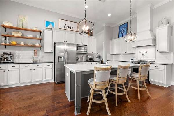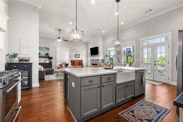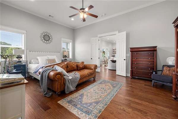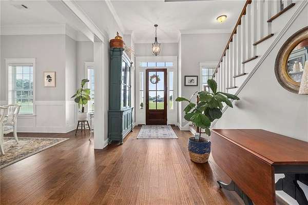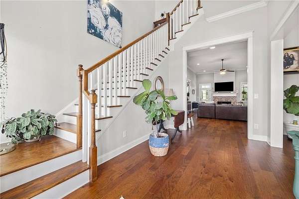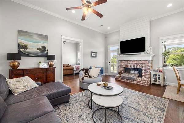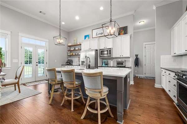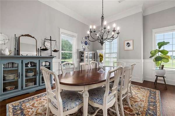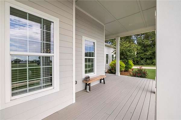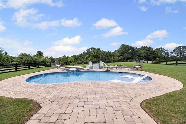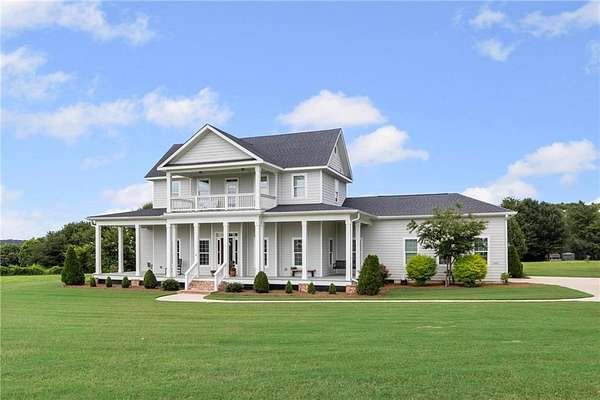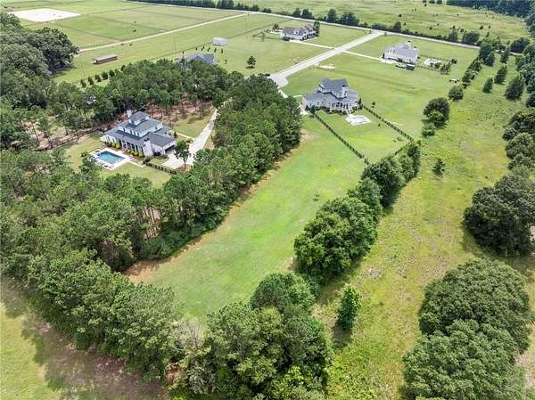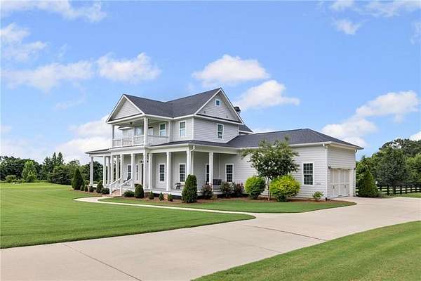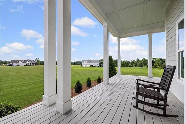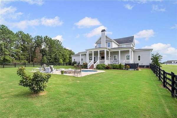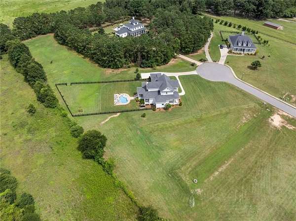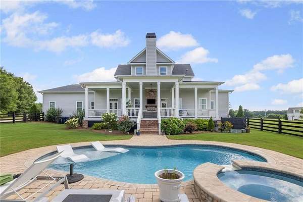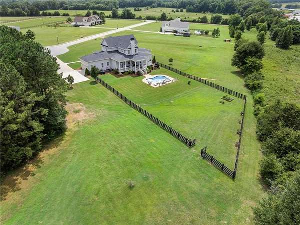 Discover a serene oasis on three pasture-like acres within the Auburn city limits at Cannon Lane, where the tranquility of the countryside seamlessly blends with city convenience. This thoughtfully designed 2018 home invites you to enjoy outdoor living with its oversized porches, swimming pool, and chicken coop. Upon entering, you'll be welcomed by a grand foyer showcasing double-height ceilings, a staircase leading to the second floor, and a formal dining room to your right. The inviting living room, anchored by a brick wood burning fireplace that continues into the outdoor space on the back porch, creates a cozy ambiance. The spacious kitchen, open to the living area, boasts a mix of black granite and white quartz countertops, farmhouse sink, gas oven/range, stainless steel refrigerator, custom wood hood, walk-in pantry, and a pot filler among its many features. Adjacent to the garage, you'll find functional mud and laundry rooms, both featuring impressive 12-foot ceilings found on the entire main level. The master suite is located in the back left wing of the home, complete with an ensuite featuring a double vanity, garden tub, tile shower, and spacious walk-in closet. The front left of the home houses a thoughtfully positioned second bedroom on the main floor. Ascend to the upper level where a landing leads to the home's third porch, offering views of the neighboring horse farm. This floor accommodates three additional bedrooms and two more well-appointed bathrooms, one of which is a jack-and-jill, providing ample space for family or guests. A tankless gas hot water heater supplies endless hot water to the home.