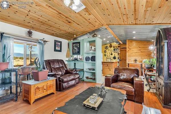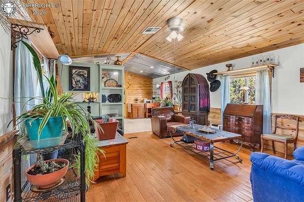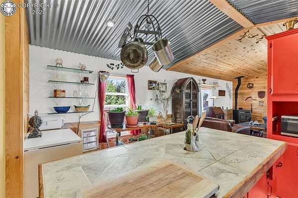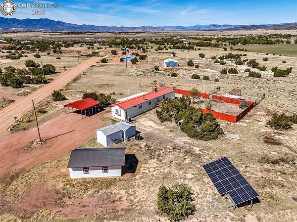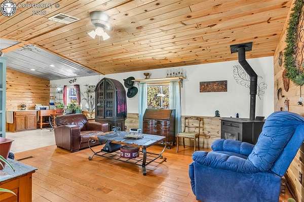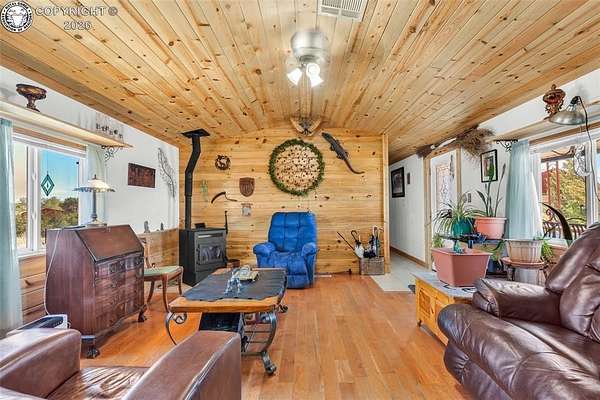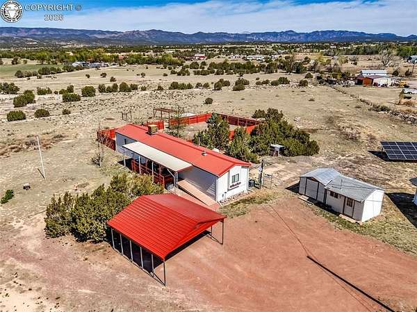 Wonderful 3 Bedroom, 2 Bath Manufactured Home on 4.88 Acres - Custom Woodwork, Solar, and More Discover comfort, character, and wide-open space with this beautifully maintained 3-bedroom, 2 bath manufactured home set on 4.88 private acres. From the moment you step onto the large, covered porch, you'll feel the warmth and craftsmanship that make this property truly stand out. This property blends efficiency, custom craftsmanship, and outdoor freedom - a rare combination that's ready for its next owner. Whether you're looking for a peaceful retreat, a functional homestead, or a place with room to grow, this home delivers. Interior Features include Custom Beetle Kill Pine woodwork throughout. A stunning rustic touch you don't often find. A pellet stove for warmth and low-cost heating. electric and plumbing have been updated including a modernized furnace and On Demand Hot Water. There is an expansive newer solar system that keeps utility expenses impressively low. The exterior is 4.88 acres of usable land with awesome views that includes a 1 car detached garage, 2 car carport, a storage shed and a shed drywalled with power for a workshop, studio or hobby space. Enjoy the built-in fire pit in the fenced back yard and fenced chicken yard, RV parking and much more!