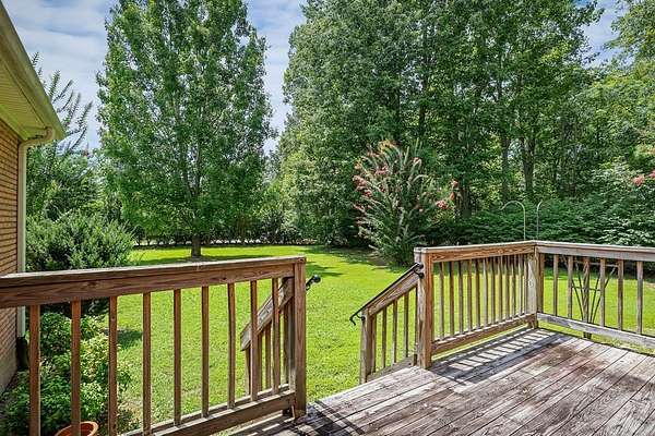 Located in a desirable area with limited inventory, this all-brick home offers 3 bedrooms and 2 bathrooms on the main floor, plus two versatile bonus rooms upstairs. The living room features vaulted ceilings, a fireplace, and an open balcony from above. You'll find true hardwood and tile throughout, along with 9-11 ft ceilings that create a spacious feel. The kitchen includes all appliances, and a built-in office area adds extra function. Outdoor spaces include a large back deck, covered front porch, and a mature, landscaped yard. 2-car garage. 1763 sq ft on the main level, 509 sq ft upstairs.