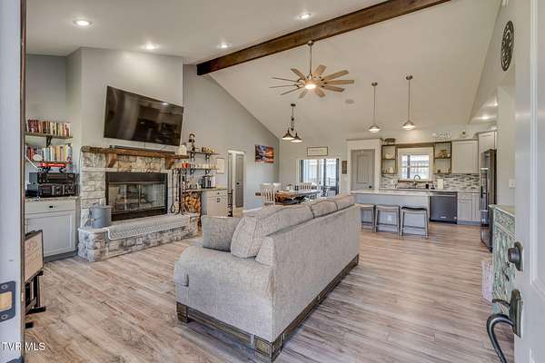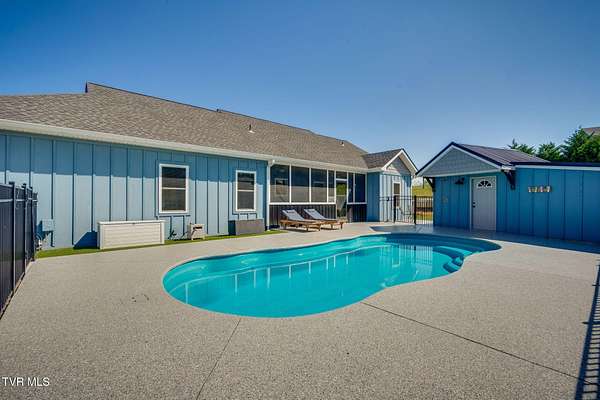 Welcome to your dream home - a stunning, fully furnished custom built rustic farmhouse that's the perfect blend of comfort, efficiency, and elevated design. This meticulously maintained single-level retreat features high-end finishes and a seamless indoor-outdoor flow, offering the ultimate turnkey lifestyle. Step inside to find an inviting open-concept layout with neutral tones, luxury vinyl plank flooring, and vaulted ceilings that create a sense of airy spaciousness. A cozy wood-burning fireplace with hand-laid stone surround serves as the heart of the living room, ideal for relaxing evenings or entertaining guests. The gourmet kitchen is a chef's delight, complete with granite countertops, shaker-style cabinetry, a large center island, and premium KitchenAid stainless steel appliances. An integrated whole-home audio system with built-in speakers extends from the main living areas to the outdoors, setting the mood for any occasion. Step outside to your private backyard oasis, where a 14,000-gallon saltwater pool invites you to unwind. The beautifully landscaped yard also features an outdoor shower, screened-in porch, and a fully outfitted pool house with its own bathroom, refrigerator, and sink - perfect for entertaining or relaxing in style. The luxurious primary suite boasts a California Closets walk-in system, spa-like bathroom with double vanities, a tiled walk-in shower with bench and niche, and elegant fixtures throughout. Two additional bedrooms offer comfortable accommodations for family or guests. Additional features include: Oversized garage Spacious laundry room with utility sink and drying rack Outbuilding for storage, hobbies, or equipment Whole-house generator for year-round peace of mind This exceptional property is ideal for full-time living or a stylish second home. Whether you're soaking in the sun by the pool, hosting friends in the outdoor living spaces, or enjoying a quiet evening by the fire, this home has it all - and everything you need is already here.