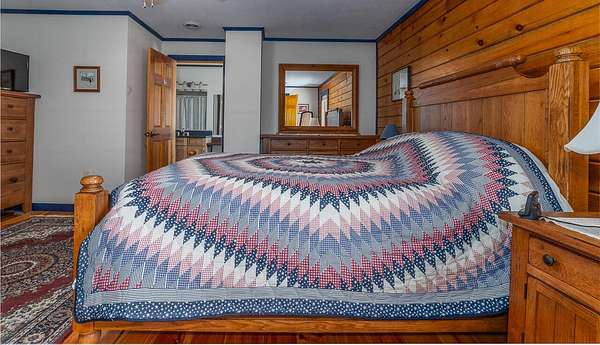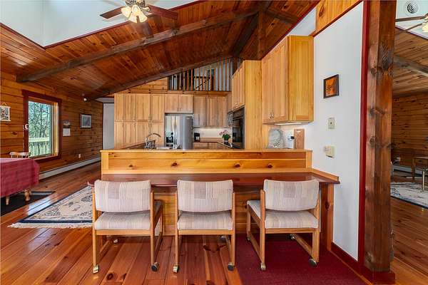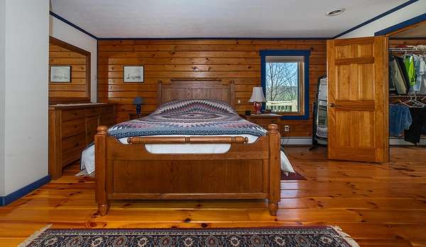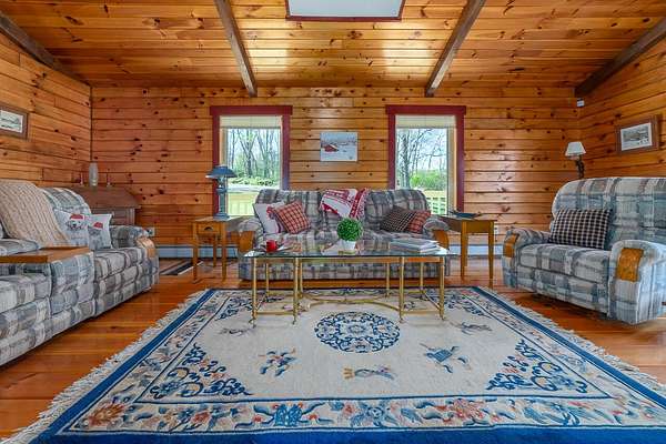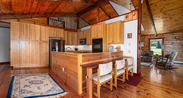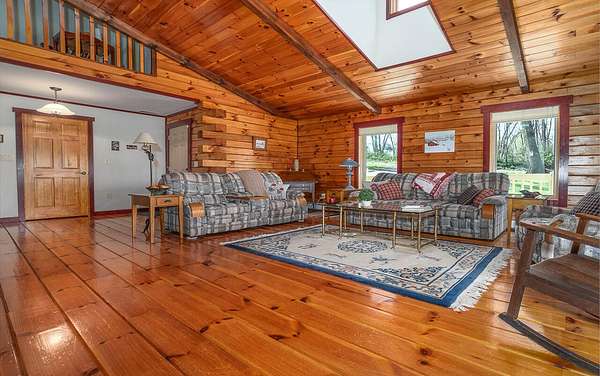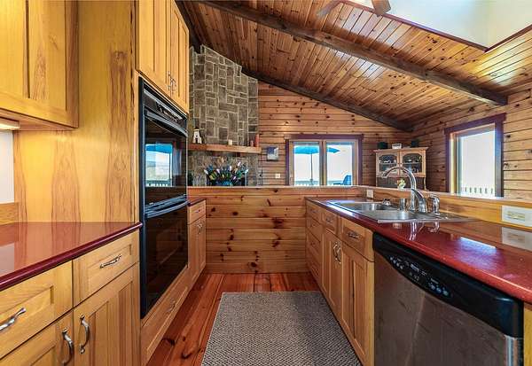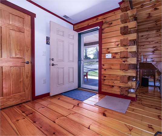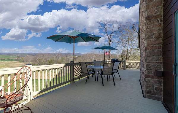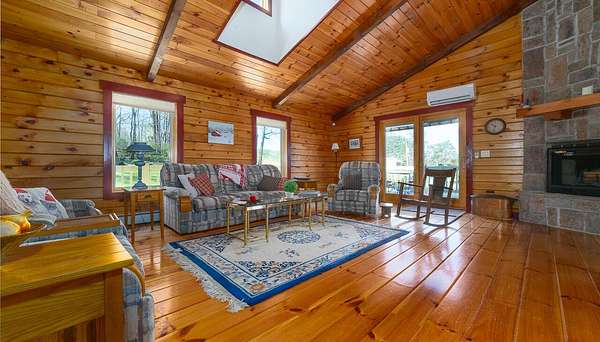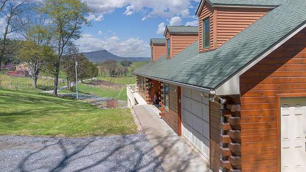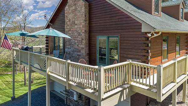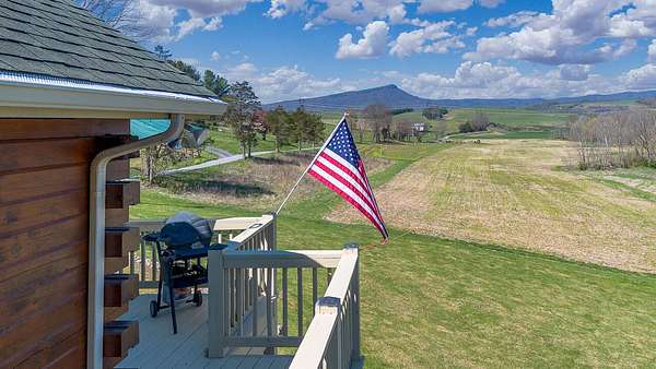 Nestled on 4 picturesque acres with Hays Creek gracefully bordering the property-complete with natural waterfalls-this beautiful log home offers serene living with spectacular views of Jump Mountain, the surrounding valley, and the rolling countryside. This well-appointed residence features three bedrooms, including a main-level suite, and three full bathrooms. A spacious great room boasts soaring cathedral ceilings and one of two stunning stone fireplaces, creating a warm and inviting atmosphere. A hobby/craft room and an office/study room are also in the home. Additional highlights include a whole-house generator, a covered front porch ideal for quiet mornings, full walk-out basement, and a large side deck perfect for entertaining while enjoying the scenic backdrop.