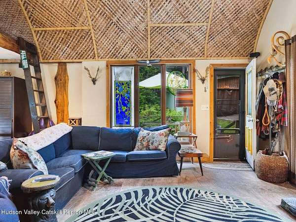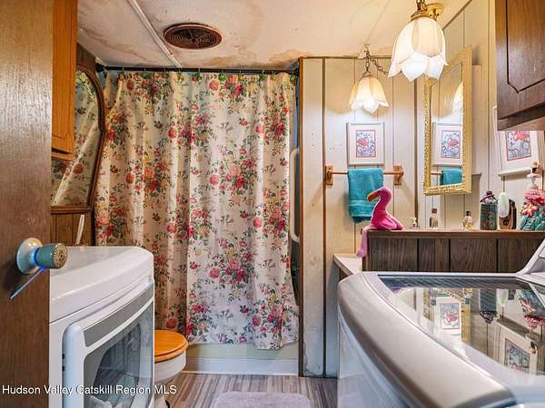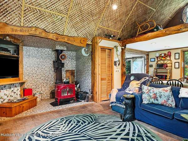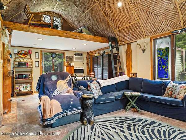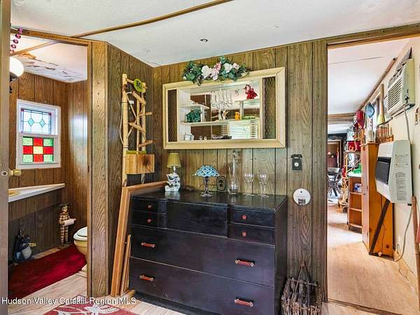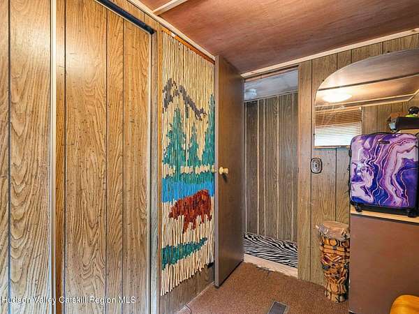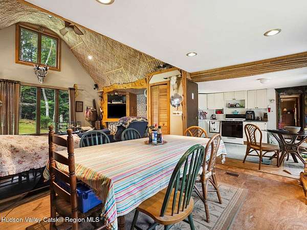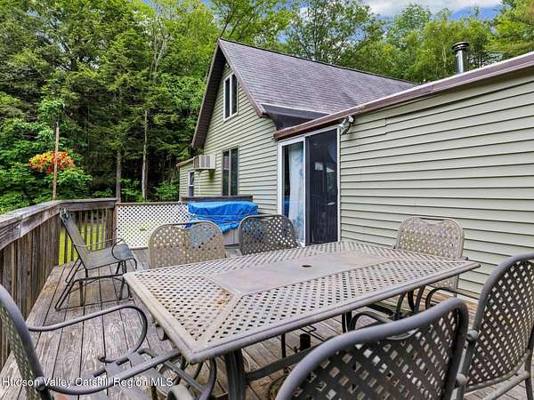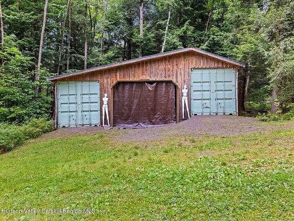 Very Unique single wide mobile home on almost 3 beautifully wooded acres. Open and spacious living area. Well kept home with decking all around. Placed in a wooded setting with circular driveway. Private and serene with lots of wildlife. The garage is 2 large containers on either side with a wooded structure built to make a wonderful garage with lots of storage. Owner to provide fully furnished including generator, rider mower, full mechanic shop, closed circuit security and the weather vane. Its a 3 season home. A 3D Walkthrough Tour is available in the digital Lookbook or by request from the listing agent.
