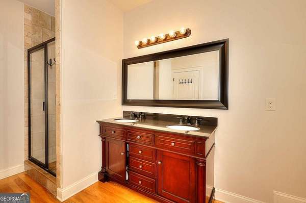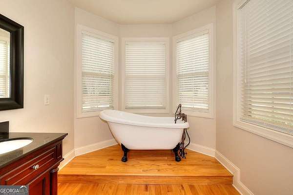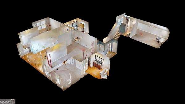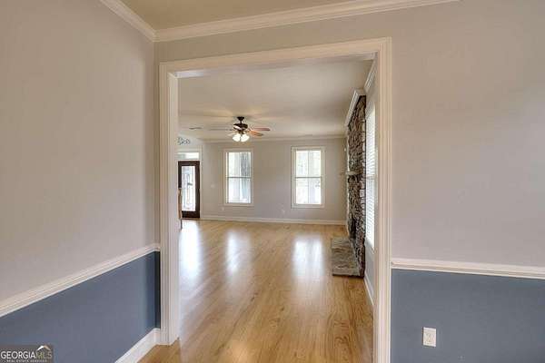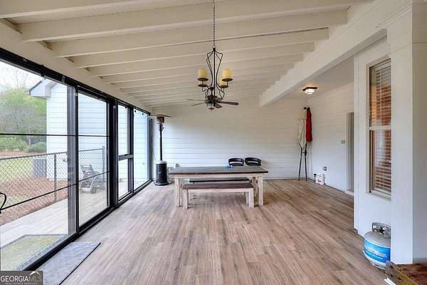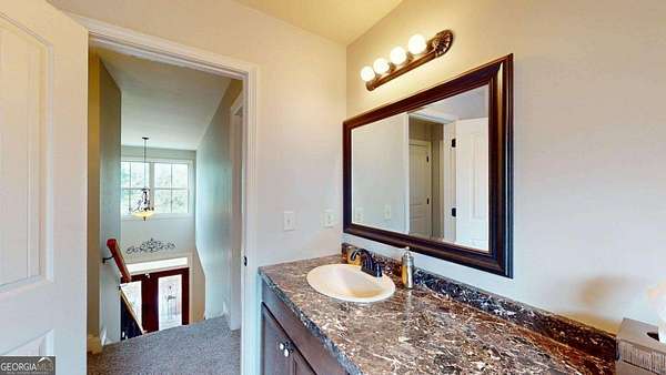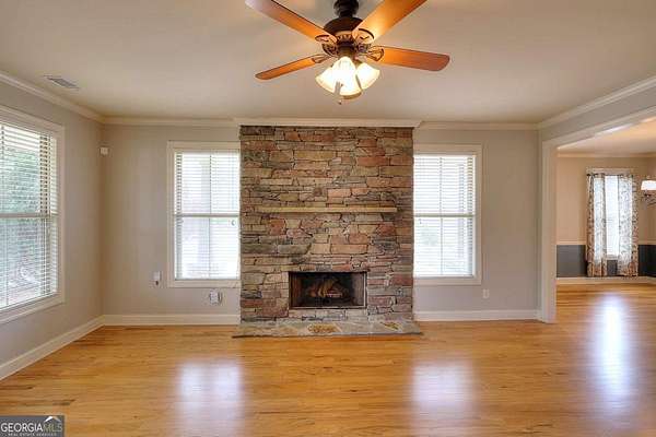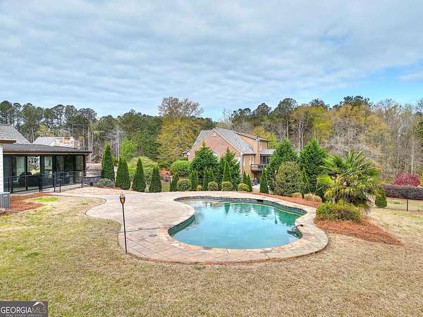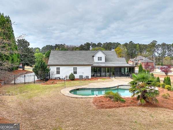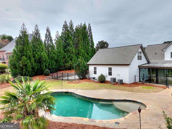 Welcome to this beautifully maintained home with a private oasis just in time for summer! Enter the front door to the 2 story foyer and find the well-appointed home with refinished hardwood floors in the main living areas, and new carpet in the bedrooms. There is a stacked stone fireplace in the living room for cozy nights. The kitchen has granite countertops, stainless appliances, (refrigerator included), ample cabinets, farm style sink, breakfast bar, and a built-in desk area. The separate dining room is oversized and plenty of room for family dinners. There is also a breakfast area with a bay window with a view of the sunroom and back yard. The primary bedroom is on the main level with an en suite bath with a step up soaking tub, double vanity, hardwood floors, and a separate oversized tile shower. The secondary baths have new tile flooring. Walk up to 2 additional bedrooms and full bath from the foyer. There is a separate staircase off the laundry room leading to an additional bonus/bath which can be utilized as a 4th bedroom. This suite is also perfect for a home office, teen/in-law suite! The laundry/mud room has a utility sink, outside entrance, and custom cabinetry for washer/dryer. The sunroom is over 400 sf with laminate flooring, and a stone fireplace w/ gas logs. The sunroom is large enough to host gatherings and can be utilized year round. What a great place to enjoy your morning coffee overlooking the private back yard! The back yard is a private oasis with a heated inground salt water pool, stone patio, fenced yard, and extensive landscaping. Walk through the gate to a shared pond with a dock! The pond is shared by the adjacent owners only. The property has ample storage including 2 walk in attic spaces. What a great place to watch the sun set! This is a must see property to truly appreciate all it has to offer! This property is an entertainer's dream!