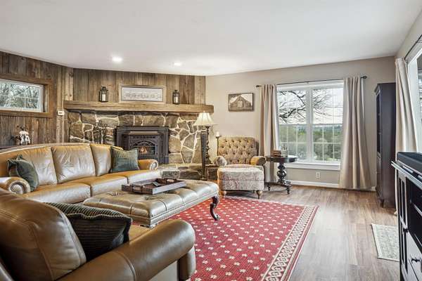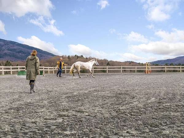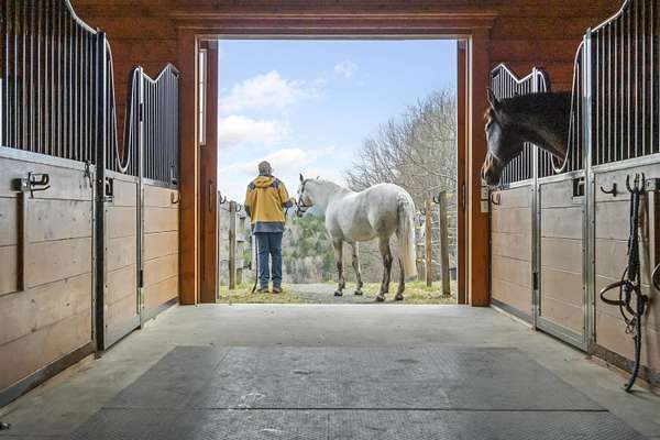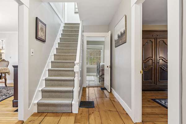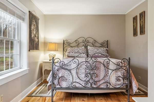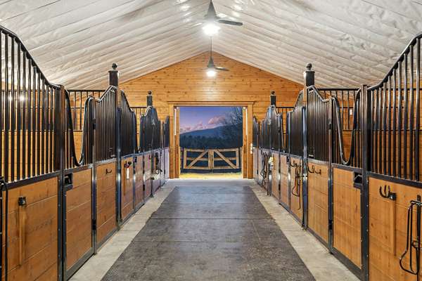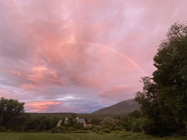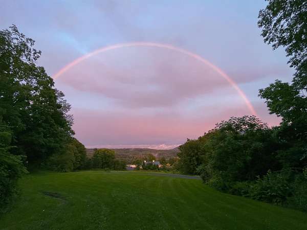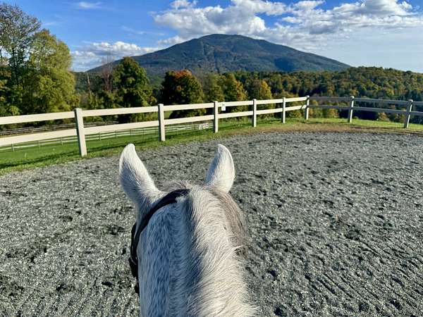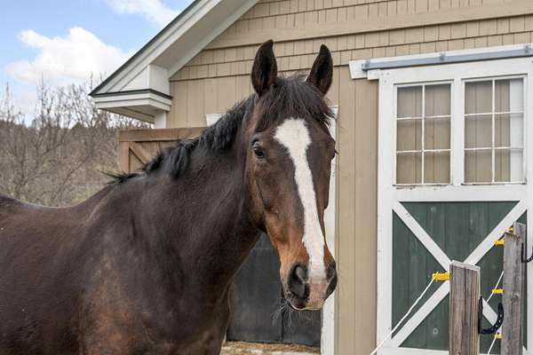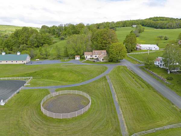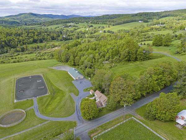 Farm at Gaelic Crossing is an equestrian property set on 26.72+- acres, has dramatic views of Mount Ascutney and, after summer showers, the frequent and magical appearance of rainbows--often even double rainbows--across the wide, open sky. This updated c.1842 New England Cape offers 2,554 square feet of finished living space, including four bedrooms--two conveniently located on the first floor. Wide pine and maple floors run throughout, adding classic farmhouse character. The equestrian amenities are outstanding: a 3,024-square-foot stable with seven spacious stalls, a heated tack room, wash stall, bathroom, and laundry area. The 100' x 200' riding arena features a state-of-the-art, eco-friendly footing made from recycled sneakers, offering outstanding drainage, low dust, and excellent footing. Outdoor facilities also included are a round pen, four grass paddocks, and one dirt paddock. Quiet gravel roads invite walking and riding, with access to the Green Mountain Horse Association trail system. A stream winds along the property's West border, while apple and pear trees provide seasonal bounty. High-speed internet ensures fast connectivity. Ascutney Outdoors, with 40 miles of trails for horseback riding, mountain biking, skiing, and hiking, is nearby, and the popular Brownsville Butcher and Pantry is less than two miles away. (Horses not included) Showings begin May 9