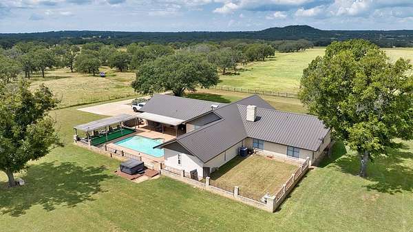 The Crow Ranch is a turnkey Hill Country homestead offering comfort, utility, and big-time infrastructure on 21.45 acres in San Saba County. With a spacious main home, multiple outbuildings, and valuable water resources, this property is designed for both ranch living, recreational hunting, and a relaxed country lifestyle. A 40 ft. 2022 Grand Design Solitude RV with a deck under a covered canopy serves as an excellent guest house or mother-in-law suite. All furnishings, equipment, and even a ranch pickup offered with an acceptable contract, making this a move-in ready package that's hard to beat. Topography: The acreage features usable, gently rolling terrain well-suited for livestock, horses, or 4-H/FFA projects. The 21+ acres also feature beautiful Post Oaks and unique rock outcroppings. From the front porch, you'll enjoy panoramic views of Dicks Mountain, adding a true Hill Country backdrop to everyday living. The land provides plenty of open space around the improvements while maintaining a private, ranch-style setting. Water: Two strong water wells service the ranch- one producing over 100 gallons per minute, the other delivering 20+ gallons per minute. This abundant supply is ideal for household, livestock, or future improvements. Wildlife: The surrounding area is home to native whitetail deer, Rio Grande turkey, and other Hill Country game. Abundant wildlife with very little hunting pressure. With open pasture and nearby cover, the ranch is well-positioned for recreational hunting or simply enjoying wildlife views from the porch. Improvements: Main Home: 3,000 sq. ft. with 4 bedrooms and 3 baths, Barn: 2,500 sq. ft. with carport and breezeway, Guest House/Mother-in-law Suite: 40 ft. 2022 Grand Design Solitude RV under canopy with deck, under a nice metal protective canopy, Fiber Internet: Available, making modern living easy, Additional Structures: Lumber shed for additional storage and utility needs, Equipment/Conveyances (with acceptable offer): Furnishings, John Deere tractor with front-end loader, Ranch pickup, and Toro lawnmower. Location: The Crow Ranch is located just outside Fredonia at 325 County Road 389-an easy drive to Mason, Brady, and San Saba with Austin and San Antonio both within a couple of hours. This central location makes it as convenient as it is private. Broker Comments: The Crow Ranch checks all the boxes-comfortable living, strong water, big barn, and a full set of equipment and furnishings that convey with the right offer. With views of Dick's Mountain from the porch, abundant water wells, and modern touches like fiber internet, it's the kind of place that's ready on DAY ONE, whether you're looking for a family ranch, a country retreat, or a working homestead. Turnkey Hill Country places of this size and quality don't come along often.