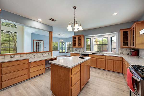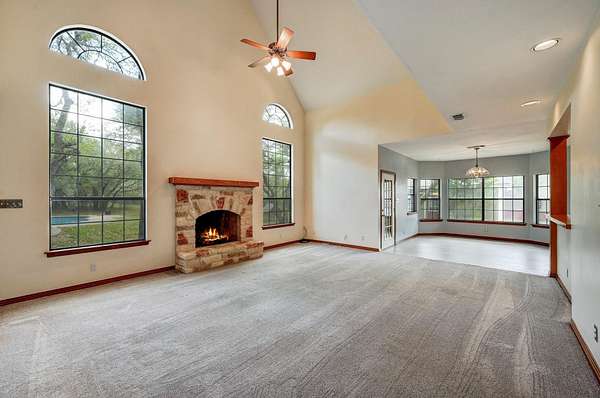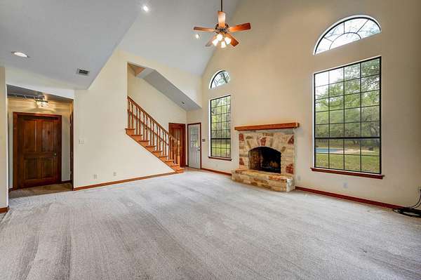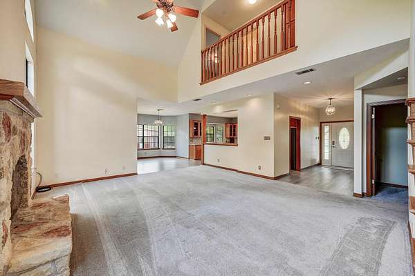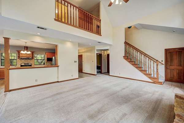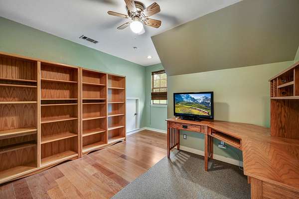 - Bar, Bookcases, Ceiling Fan(s), Ceiling-High, Kitchen Island, Open Floorplan, Primary Bedroom On Main, Study/Home Office, Walk-In Closet(s)