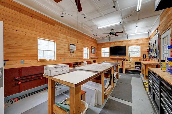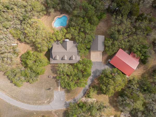 A pocket of paradise!! Enjoy the advantage of country living-private, wooded, acreage, room for horses or other animals, but with the ease and convenience of being minutes from schools, shopping, and hospitals. Enter thru your private tree covered drive to your new home. The covered porches extending the length of the home and wrapping around part of the side add to the charm and appeal of this property. The open floor plan has a large kitchen with generous cabinet space, dining area surrounded by windows, and a living room with high ceilings and a large fireplace. The main bedroom is downstairs with a large area of built it storage, walk in closet, separate tub and shower and double vanity. Upstairs are two generous sized bedrooms, a small multipurpose area overlooking the living room and an additional room currently used as an office. The beautiful backyard space with some magnificent trees and a large pool are perfect for family fun and entertaining guests. With over 9 acres this property this property includes: a large detached two car garage, large multipurpose metal building including a decked out workshop, covered storage for an RV, covered storage for a tractor. For the animal/horse lover the home boasts a small corral, tack room and covered area for animals.