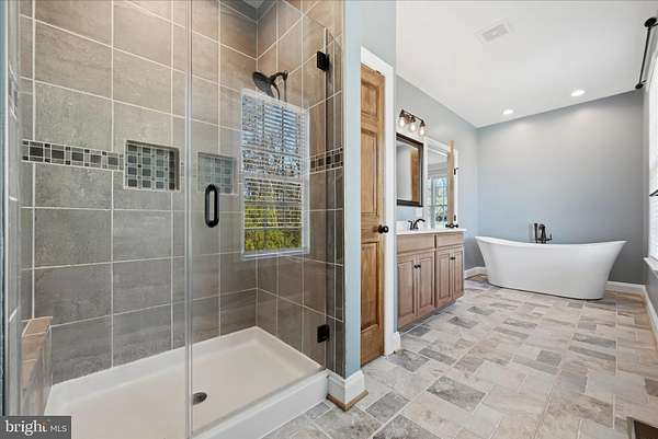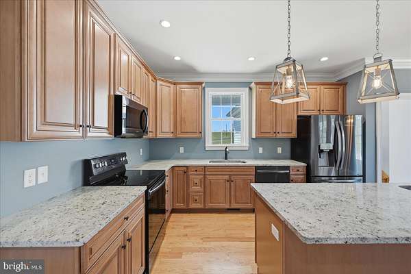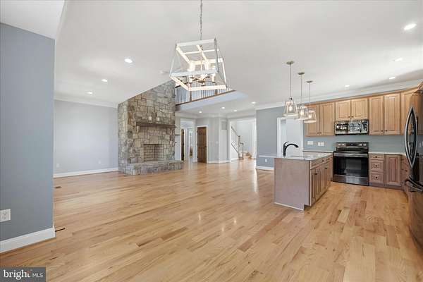 - Additional Stairway, Breakfast Area, Carpet, Ceiling Fan(s), Combination Kitchen/Living, Country Kitchen, Crown Moldings, Dining Area, Entry Level Bedroom, Family Room Off Kitchen, Formal/Separate Dining Room, Island Kitchen, Open Floor Plan, Pantry, Primary Bath(s), Recessed Lighting, Tub Shower Bathroom, Upgraded Countertops, Walk-In Closet(s), Walk-In Shower Bathroom, Water Treat System, Wood Floors