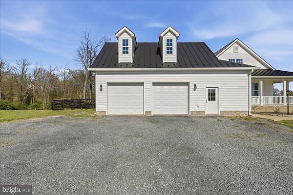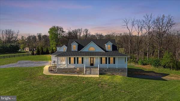 Beautifully designed home situated on 5 acres, offering space and comfort! This spacious property features 4 bedrooms and 4 full bathrooms, including 2 main-level bedrooms with walk-in closets for added convenience. Step inside to find hardwood flooring throughout the main living areas, a stunning 2-story stone fireplace as the centerpiece of the home, and a well-appointed kitchen with granite countertops, an island with an additional sink, and breakfast nook. A formal dining room adds elegance for hosting gatherings. The upper level features 2 bedrooms with a full bath that leads into one of the bedrooms. The upstairs hallway has a banister and overlooks the first floor. Upstairs bedrooms have casement windows. The home also offers a full unfinished basement complete with a full bath and garage with door opener. Basement is already framed and ready for your finishing touches-perfect for expanding living space or creating an in-law suite. A 2-car attached garage on the main level. Step inside from the garage and find an oak stairway leading to an unfinished bonus room above providing even more opportunity for customization. Enjoy the outdoors from the charming L-shaped front porch or relax on the back deck overlooking a partially fenced yard. Additional features include a durable metal roof and there is a concrete pad and hookup for outdoor woodstove. This property combines peaceful country living with room to grow-don't miss the chance to make it your own!
