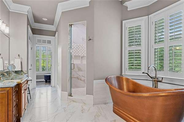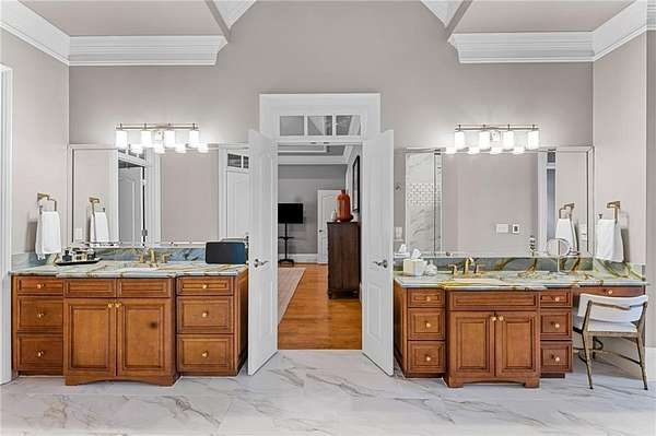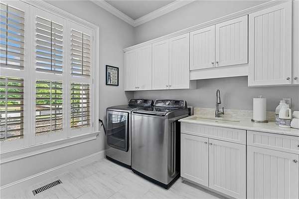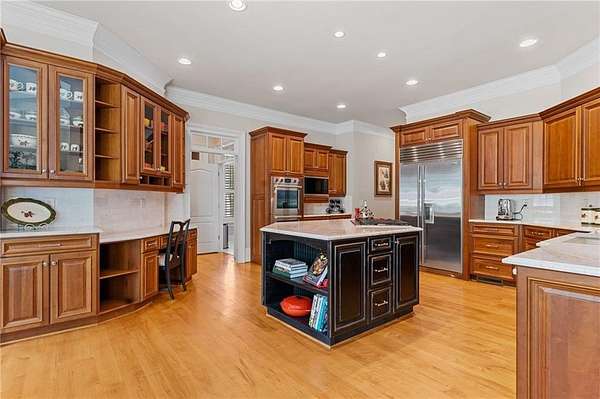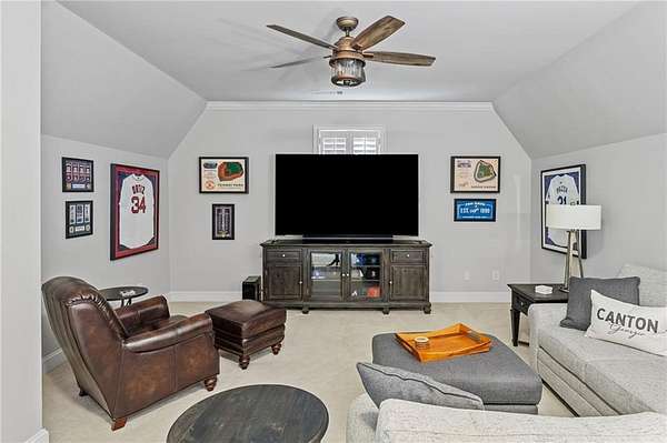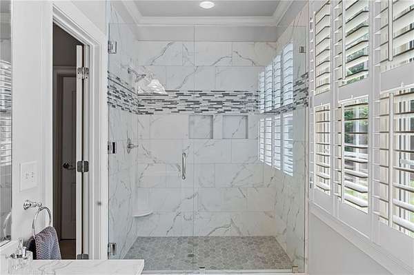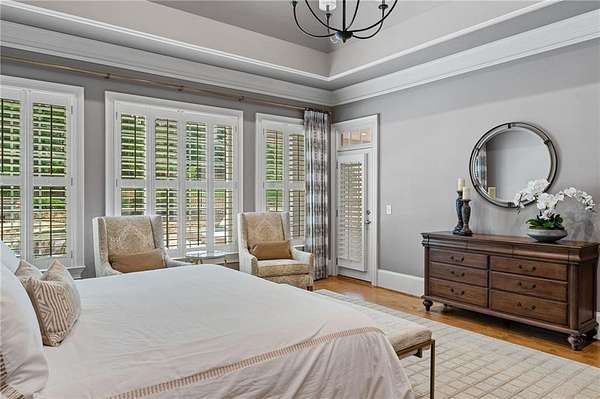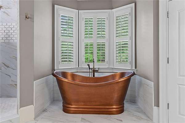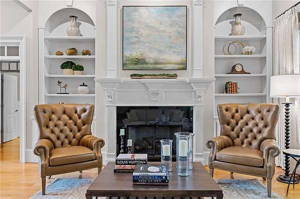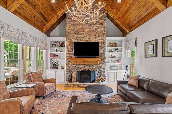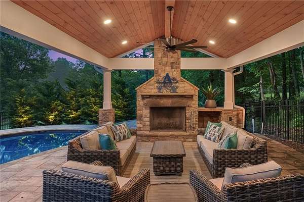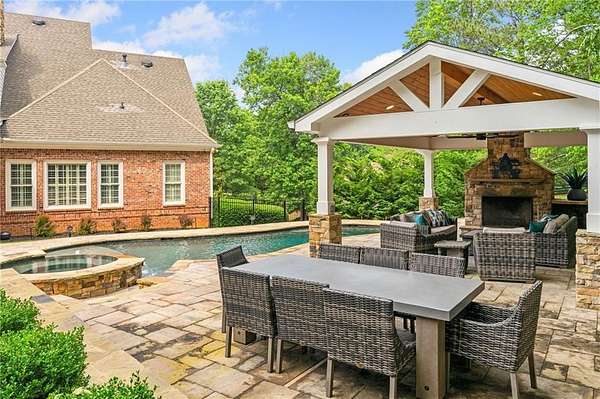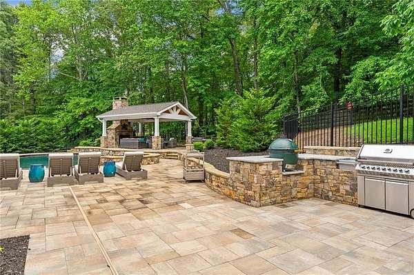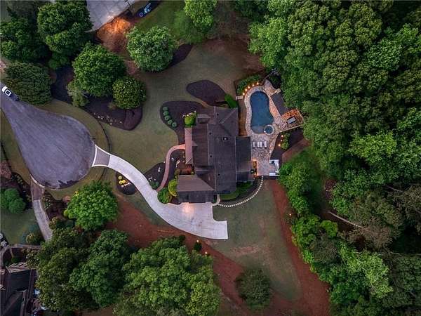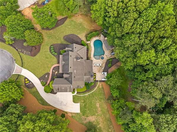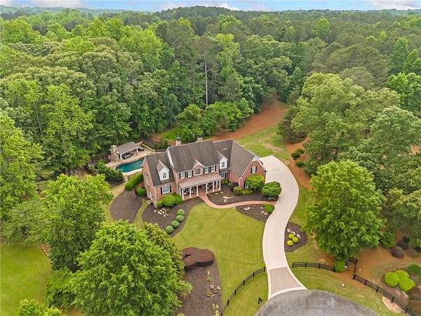 This stunning executive home sits on 2 acres in the Creekview High School district, in the exclusive Shoals at Arbor Hill equestrian neighborhood-just 25 minutes to Downtown Alpharetta and Woodstock. White lime wash depicts a possibility for this homes exterior.*** Enjoy resort-style living with a heated saltwater pool and hot tub, landscape lighting by Georgia Lightscapes, new irrigation, a covered pavilion with fireplace, granite outdoor kitchen, and a separate gazebo with fireplace. Inside, the chef's kitchen features quartzite counters, WOLF appliances, Sub-Zero fridge, Blanco sink, and new hardware. The main-level owner's suite offers hardwood floors, dual closets, and a remodeled bath with COPPER air-jet tub, heated floors, bay windows, and quartzite throughout. Guest and laundry baths have also been fully updated. With 6 bedrooms, 6.5 baths, a fireside family room, keeping room with fireplace, loft recreation area, unfinished basement, and a main-level office with full bath (ideal for a 6th suite), there's space for everyone. Upstairs includes 4 more suites and a media loft wired for surround sound. Additional highlights: whole-home surge protection, tankless and backup water heaters, new HVAC upstairs, Sonos wiring, Boston Acoustics speakers, custom lighting, cherry bourbon closet, and garage with Guardian flooring, custom storage, and kegerator system by Garaginazation ($30K). Community perks include a park with gazebo, playground, and court, plus optional membership at nearby Woodmont Golf & Country Club. Luxury, location, and lifestyle-this home has it all.