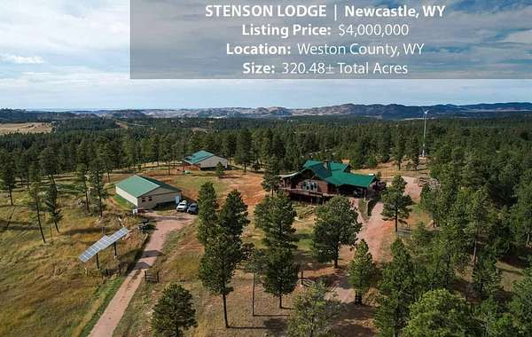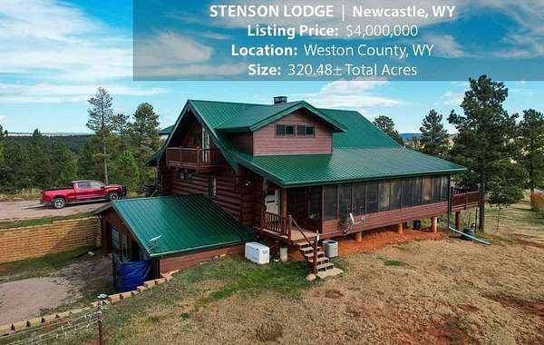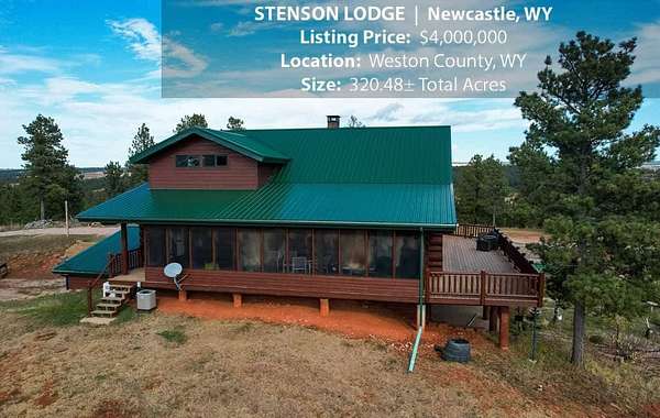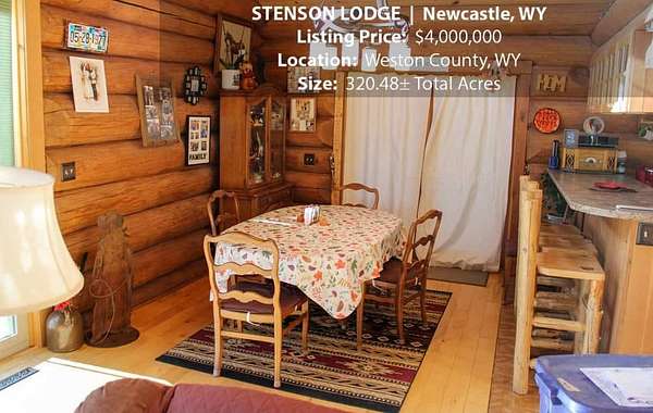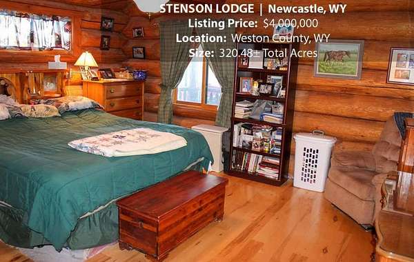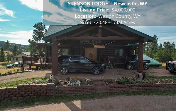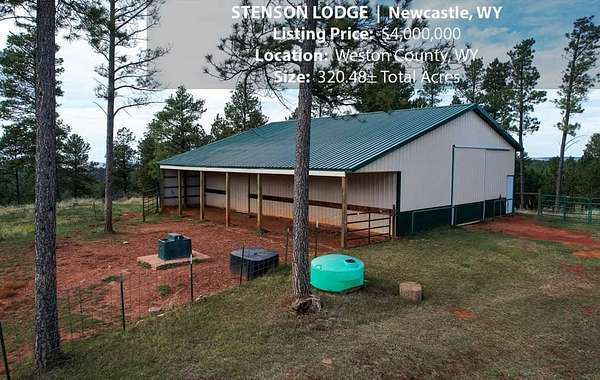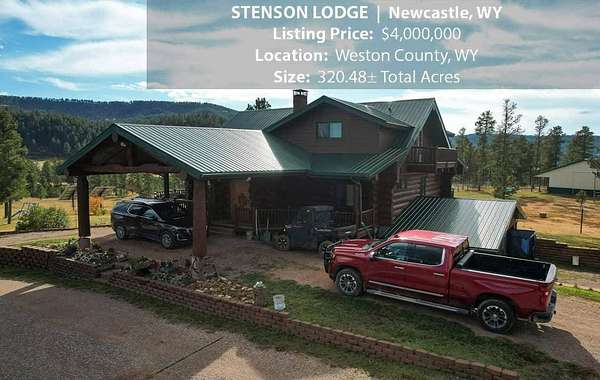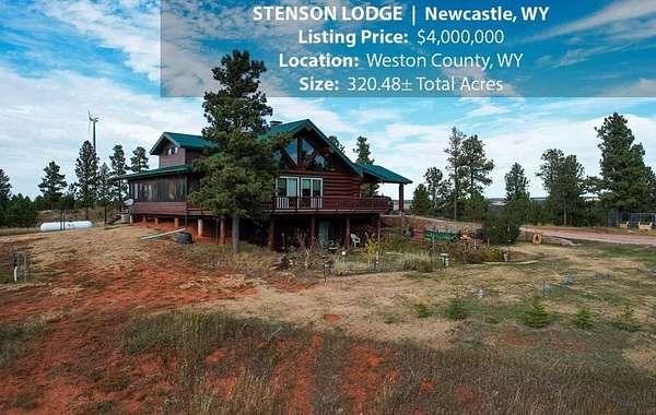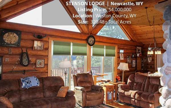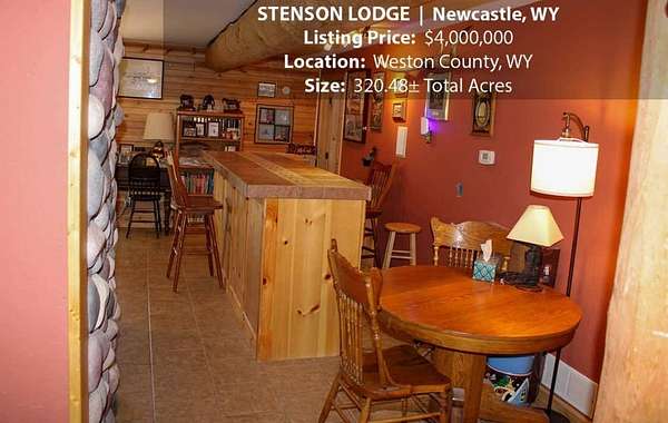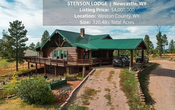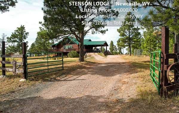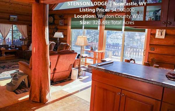 The Stenson Lodge is an incredible opportunity to own a beautiful custom cedar log home in the Black Hills of Wyoming situated on 320+- deeded acres. This property offers it all; stunning home with amazing views, an acreage that is well fenced with ample water, and a recreation opportunity that is highlighted by the two landowner elk tags that are historically attached to the property. The log home, built in 2005, offers 3 bedrooms and 3 bathrooms with approximately 3,488 sq. ft. of living space. The rustic accents of the home start at the custom-made front door which is complemented by the rock on the wood burning fireplace as a marquee feature of the home, showcased from the bottom floor to the top of the open beam ceiling. The home's charm is evident both inside and out as there are incredible views from the deck on the main floor which faces south and towards Sweetwater Mountain. A second deck area off of the family room on the upper floor offers a tranquil setting with wooded views to the north. The outdoor improvements include a 40'X60' shop with a partial cement floor and a 16' sliding door. There is also a 1,728 sq. ft. livestock barn that was constructed in 2013, with a tack room, and has plenty of room for either hay or equipment storage. The barn and surrounding horse pasture also offer an automatic waterer and a covered loafing area on the south side. The Stenson Lodge and the 320 acres that surround it offer tranquil country living in the western Black Hills with incredible rustic charm, and majestic views that are second to none.