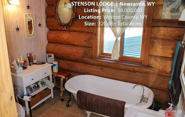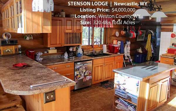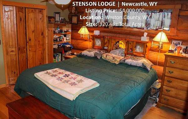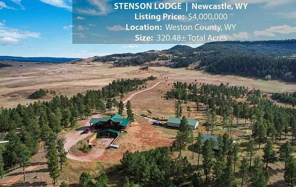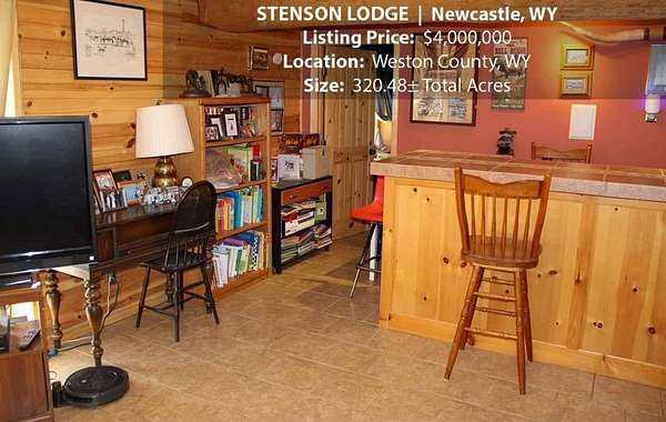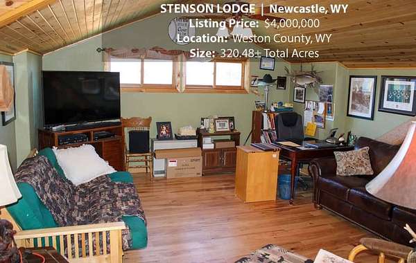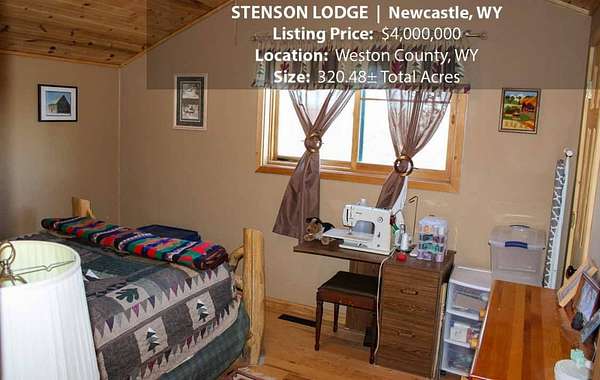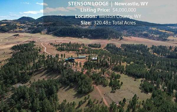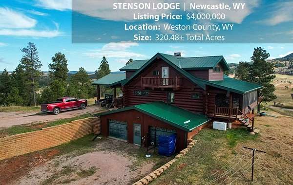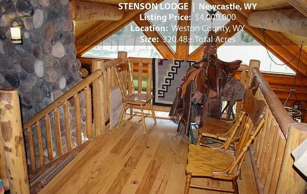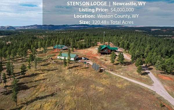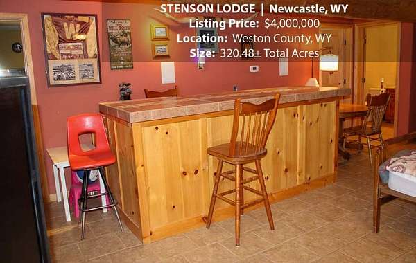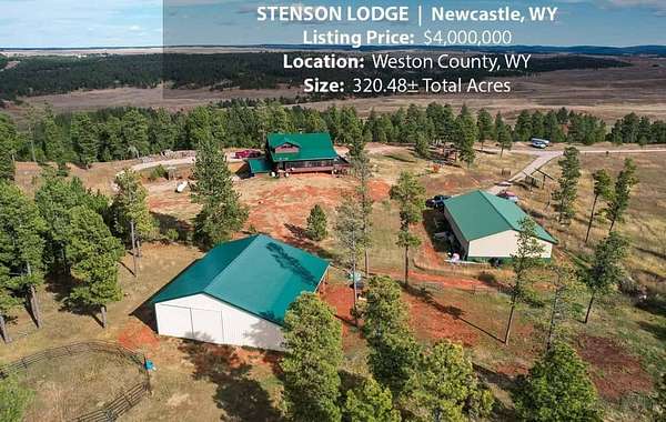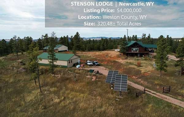 The Stenson Lodge is an incredible opportunity to own a beautiful custom cedar log home in the Black Hills of Wyoming situated on 320+- deeded acres. This property offers it all; stunning home with amazing views, an acreage that is well fenced with ample water, and a recreation opportunity that is highlighted by the two landowner elk tags that are historically attached to the property. The log home, built in 2005, offers 3 bedrooms and 3 bathrooms with approximately 3,488 sq. ft. of living space. The rustic accents of the home start at the custom-made front door which is complemented by the rock on the wood burning fireplace as a marquee feature of the home, showcased from the bottom floor to the top of the open beam ceiling. The home's charm is evident both inside and out as there are incredible views from the deck on the main floor which faces south and towards Sweetwater Mountain. A second deck area off of the family room on the upper floor offers a tranquil setting with wooded views to the north. The outdoor improvements include a 40'X60' shop with a partial cement floor and a 16' sliding door. There is also a 1,728 sq. ft. livestock barn that was constructed in 2013, with a tack room, and has plenty of room for either hay or equipment storage. The barn and surrounding horse pasture also offer an automatic waterer and a covered loafing area on the south side. The Stenson Lodge and the 320 acres that surround it offer tranquil country living in the western Black Hills with incredible rustic charm, and majestic views that are second to none.