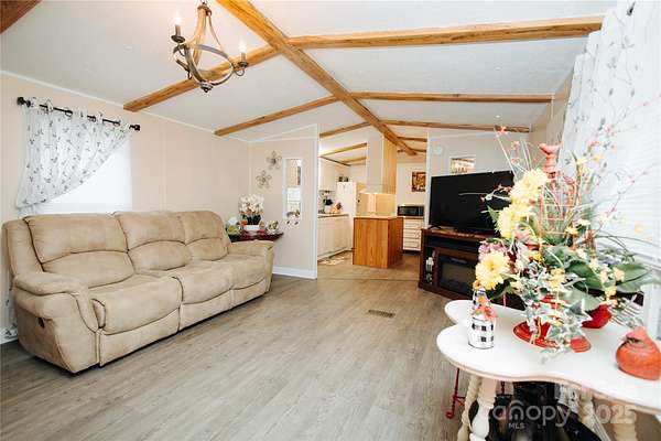 Est $1,096/moCOUNTRY SETTING WITH MOUNTAIN VIEWS - 2 Bedroom 1.5 Bath home with covered front porch and rear covered deck. The interior offers a en-suite bedroom / bath on one end of the home, another bedroom and half bath on the opposite end, and then the great room and fully equipped kitchen in the middle. Mechanical upgrades in the last few years are the newer heat pump, windows, vinyl siding, etc. The rear covered deck has long range mountain views and views the large, wooded 2 acres. There is also another smaller detached workshop building. The land is open in the front yard and wooded in the rear yard. The rear yard has an excellent picnic and firepit area. The location is just a short 2 miles / 5 minutes from Old Fort and I40.