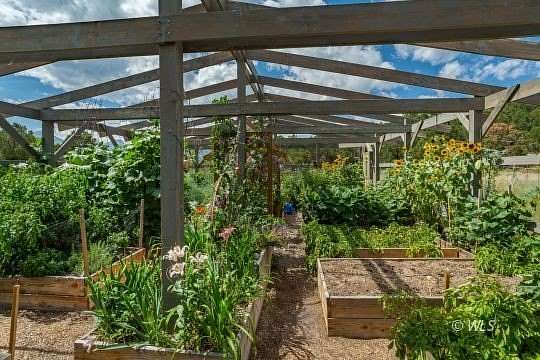 - All Year Access, Garden Area, Gutters & Downspouts, Partial Landscape, Trees, View of Mountains, Work Shop