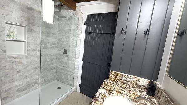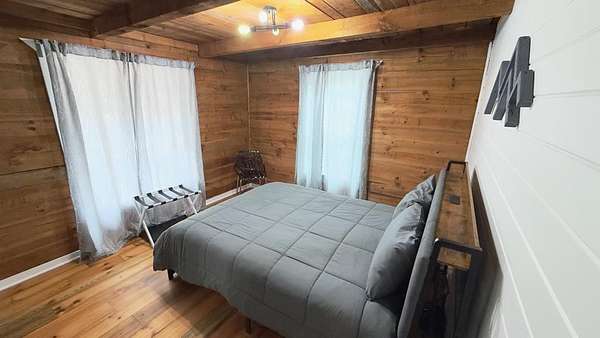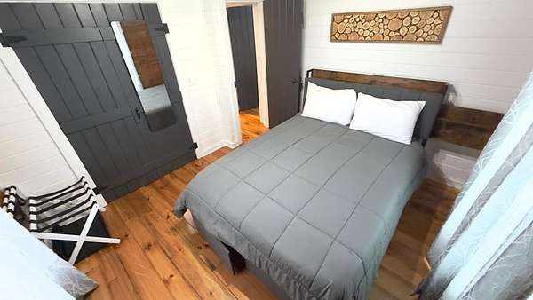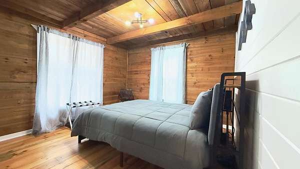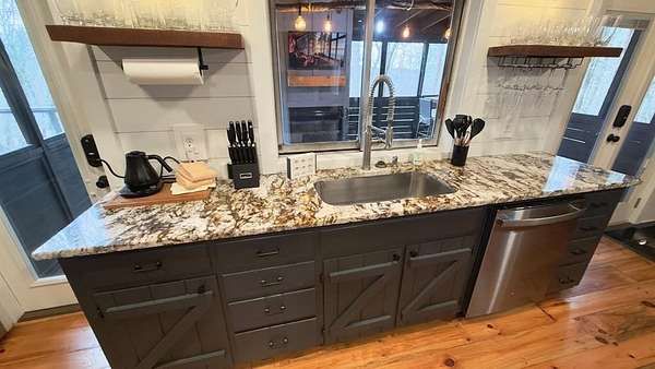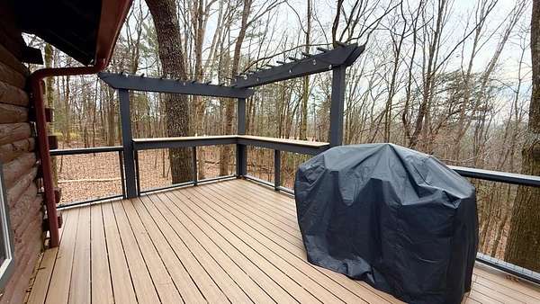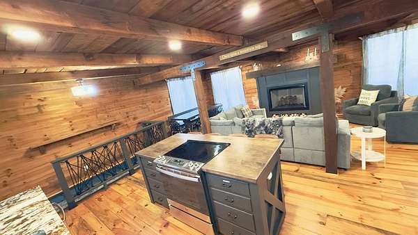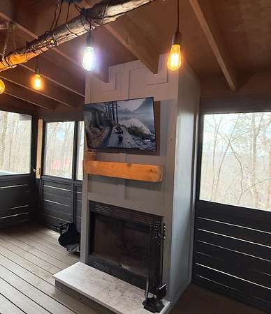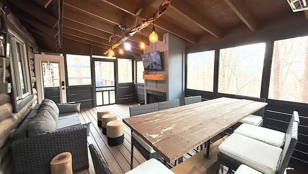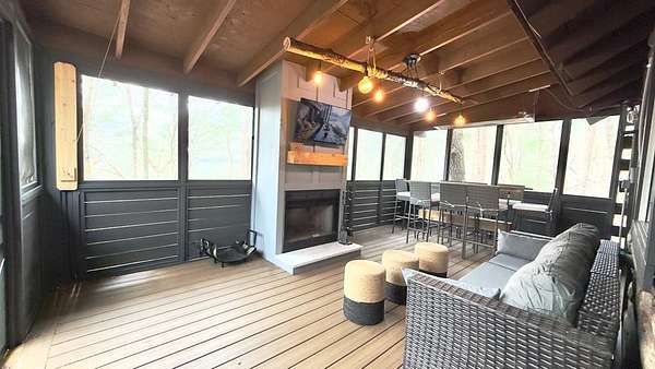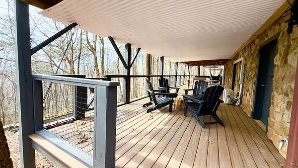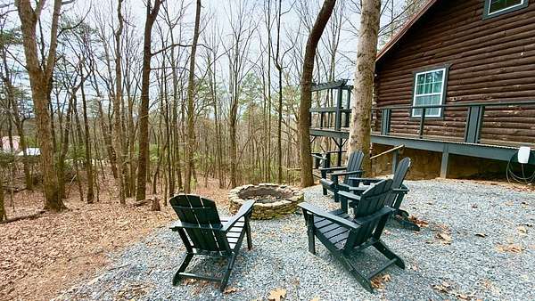 Welcome to a truly magical mountain escape. This charming, fully renovated cabin sits on two combined lots totaling 4.26 private acres and offers the perfect blend of rustic character and modern comfort. Ideally located minutes from apple houses, downtown Ellijay, hiking trails, and outdoor recreation, this property is perfect as a primary residence, second home, or income-producing short-term rental. Thoughtful upgrades throughout include 1,200+ sq ft of composite decking, a screened porch with pet-proof screening and wood-burning fireplace, covered lower deck with commercial-grade infrared heaters, bar top seating, and an updated firepit area with lighting and chairs. The interior features fresh paint, new lighting, custom barn doors, a renovated kitchen with painted cabinetry, live-edge island top, new hardware and fixtures, all new furniture, brand-new refrigerator, and all-in-one washer/dryer. The living room is highlighted by a custom mantel and remote-controlled gas fireplace. The finished basement adds 420 sq ft of living space with a full bath featuring stacked-stone shower, custom bunk room sleeping four, TV/hangout area with owner's closet, under-stair bar with mini fridge, new flooring, mini-split HVAC, and separate storage. Major improvements include a full interior French drain waterproofing system (warrantied dry), interior stairway to basement, second electrical subpanel, Tesla charger, gravel driveway, landscaping stairs, replaced lower-level windows, pest-sealed crawlspace and attic (warranty conveys), and freshly painted exterior trim, decks, and new handrails. This is more than a cabin—it's a mountain storybook setting designed for unforgettable weekends, effortless hosting, and strong rental appeal. Whether you're sipping coffee on the porch, exploring nearby trails, or enjoying downtown Ellijay, this one checks every box. Schedule your showing today.