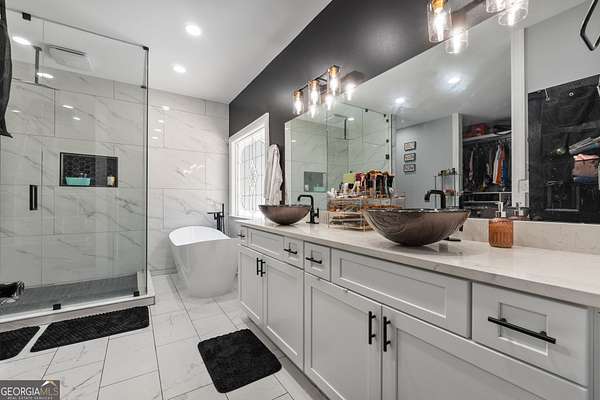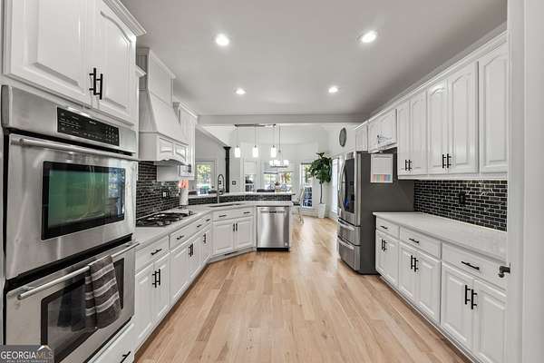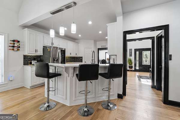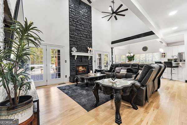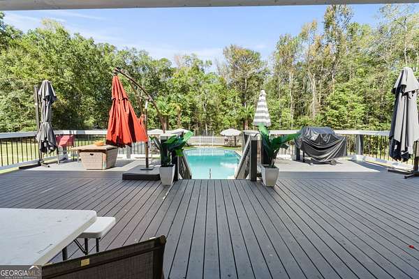 Tucked away at the end of a quiet cul-de-sac, this beautifully crafted 2006 Worley Brothers home sits on nearly five peaceful acres-offering the perfect blend of open green space and mature woods that provide natural privacy. Inside, the welcoming two-story layout immediately feels like home. The main-level owner's suite serves as a private retreat with direct access to the rear deck and a newly renovated spa-like bath featuring a seamless glass shower with rain showerhead, soaking tub, quartz countertops with vessel sinks, and a boutique-style walk-in dressing closet. Just down the hall, an office or guest bedroom-easily a potential 5th bedroom-sits beside a full bath, creating an ideal guest setup or work-from-home space (with Charter Spectrum internet available!). Upstairs, three spacious bedrooms offer thoughtful touches: one boasts a private bath perfect for a teen suite, another features an enormous walk-in closet, and a tiled full bath with separate wet area and dual-sink vanity serves the remaining spaces. A cozy loft adds a great flex area for lounging, studying, or play. At the heart of the home is a beautifully renovated gourmet kitchen that will make any cook smile! Outfitted with stunning quartz countertops, abundant cabinetry, a sleek tiled backsplash, and stainless steel appliances-including 5-burner gas cooking beneath a striking vent hood and JennAir double ovens-this kitchen blends style and function effortlessly! You'll love the large corner pantry and the sunlit breakfast area with vaulted ceiling, perfect for slow mornings. The formal dining room just off the kitchen is ideal for dinner parties and holiday gatherings. The two-story family room is truly breathtaking with its soaring 19-ft ceiling, dramatic stone accent wall, and cozy floor-to-ceiling fireplace. French doors open to the rear deck, creating a seamless connection between indoor and outdoor living. Additional highlights include a grand two-story foyer, a spacious laundry room with utility sink, and an attached 2-car garage. Thoughtful upgrades shine throughout-beautiful trim details, smooth ceilings, recessed lighting, refinished hardwood flooring in the main living areas, and tile in all wet spaces. And with a brand-new septic system, you'll enjoy peace of mind for years to come. Outside, your private oasis awaits! The in-ground saltwater pool, framed by a classic white picket fence and expansive entertaining deck, promises endless summer enjoyment and the poolside palm trees may make you forget that you're not on vacay! With nearly five acres to explore, there's plenty of room to roam, garden, play, or simply soak in the natural beauty. Come experience the quiet life that Upson County has to offer! You're just a little over an hour from Atlanta, Hartsfield-Jackson International Airport, and Columbus-and only an hour to Peachtree City, Newnan, and Macon, plus just 15 minutes from Zebulon's VA Medical Center. Come see for yourself why this property feels like the perfect place to slow down, spread out, and truly settle in.