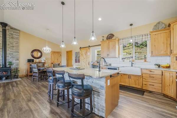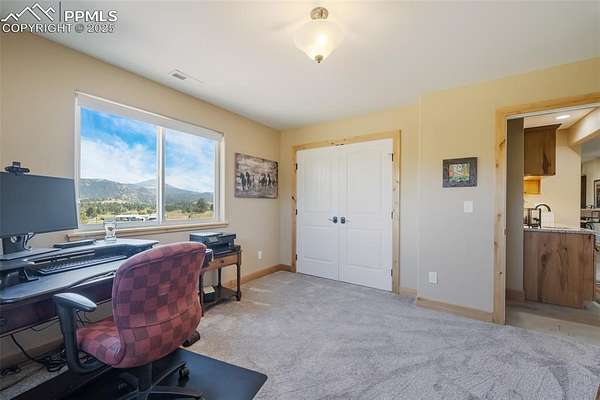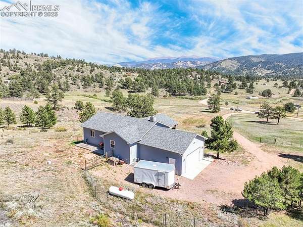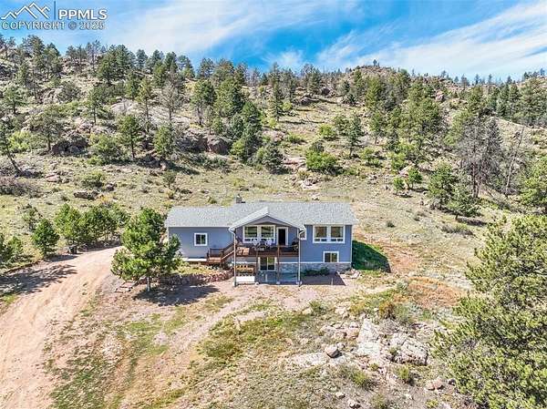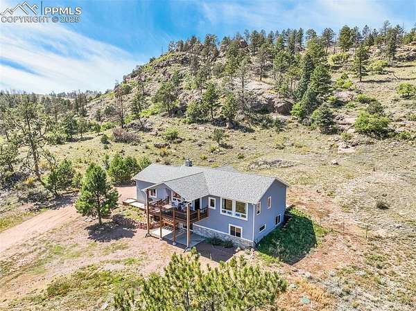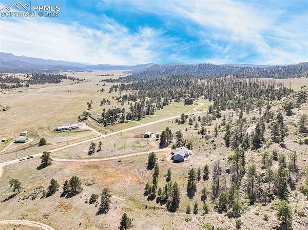 Experience the essence of mountain living in this custom-built ranch-style home on 11.8 picturesque acres in Florissant, CO. Designed with comfort mountain style, this stucco home combines elegance with rugged beauty, perfectly complementing the natural surroundings. As you approach, you'll be captivated by sweeping views of the iconic Pikes Peak and the striking rock outcroppings scattered across the property. The expansive acreage offers ample space for both leisure and livestock, complete with a barn featuring 2 stalls and multiple fenced pastures, ideal for equestrian enthusiasts or those seeking a hobby farm. Inside, the home boasts a seamless blend of rustic charm and modern sophistication. The heart of the home is its open concept great room and the kitchen is a chef's dream outfitted with top-of-the-line appliances, sleek finishes, and ample storage. Whether preparing gourmet meals or hosting friends and family, this kitchen ensures effortless functionality and style. The raised ranch layout provides ease of living, with spacious living areas and picture windows that open to breathtaking outdoor vistas, filling the home with natural light and creating an inviting atmosphere. Enjoy the best of indoor-outdoor living as you relax on the porch, savoring the crisp mountain air and panoramic views that stretch across the horizon. With endless possibilities for recreation and serene privacy, this property offers a rare combination of luxury, comfort, and the beauty of Colorado's high country. Whether you're looking for a peaceful retreat or a full-time residence, this property offers a truly unique mountain lifestyle.