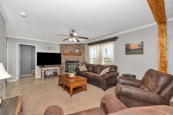 Great 4BR/2BA 2128sf house on 3.22 acres just outside of the city limits. With 3 fenced paddocks and 2-stall barn, this property is ready for you to bring your horses! Large covered porches give a relaxing place to unwind. All kitchen appliances and the washer & dryer will convey! The bedrooms and living room have carpet, while the den and kitchen have vinyl for easy clean ups. The large primary bedroom has a sitting room and dual walk-in closets as well as a full bath with double vanities, and a separate jacuzzi tub and shower. The spacious kitchen has plenty of counterspace and cabinetry and a kitchen island for additional storage. See documents for additional details.