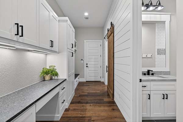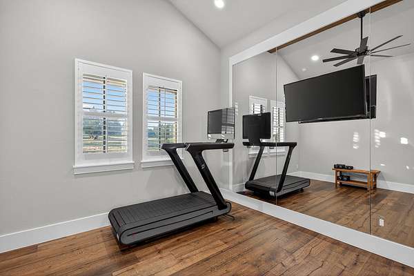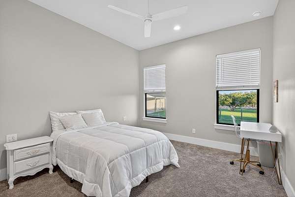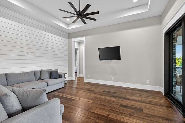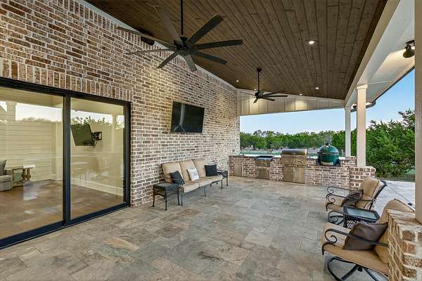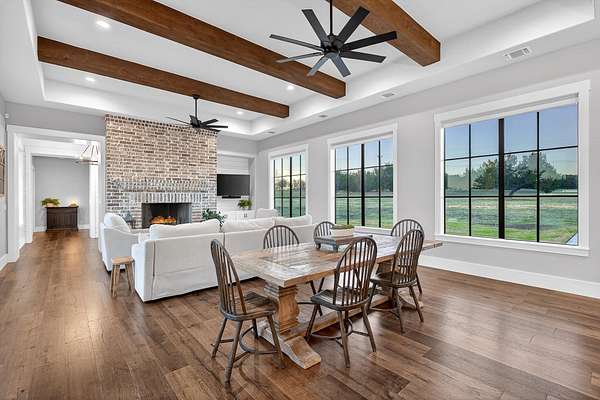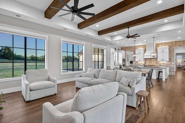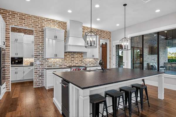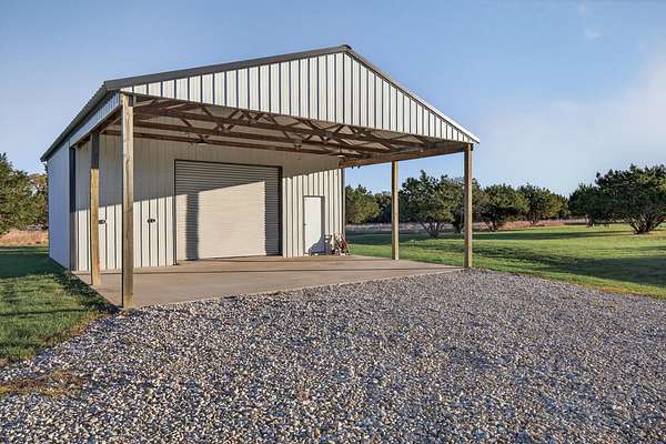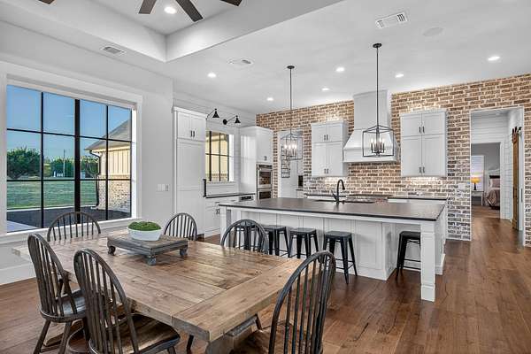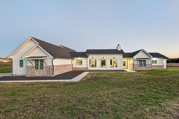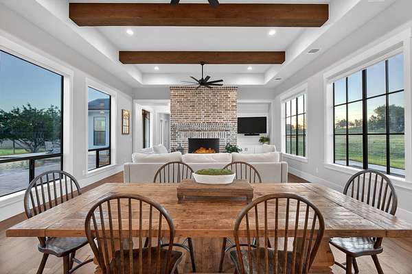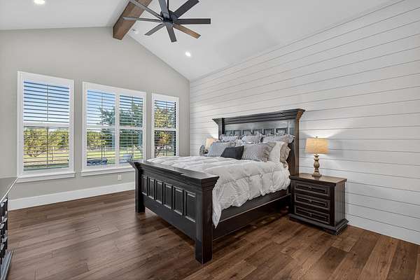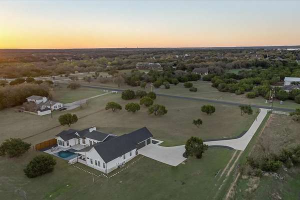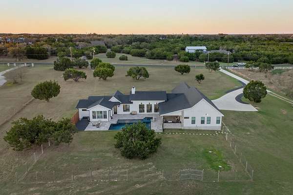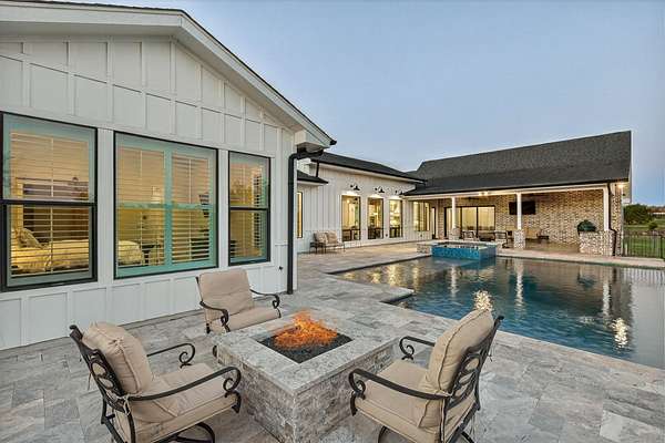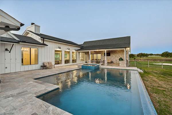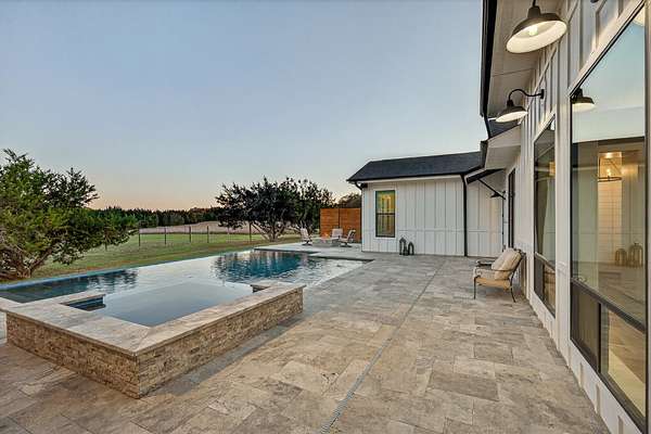 Welcome to 325 Sundance Trail, a 2019 custom-built 5 bed, 4 bath farmhouse nestled in the gated Sundance Ranch community. Spanning 3,741 sqft on 5.62 fully fenced & gated acres, this estate offers luxury, privacy & country living. Be greeted by hardwood floors & stunning architectural details, including vaulted ceilings with beams in the living room, front bedroom/flex space & primary suite & a sophisticated trayed ceiling in the family room. Exposed brick accents in the kitchen & family room add warmth & texture to the open-concept layout. The kitchen features a Wolfe 36" cooktop, built-in Miele coffeemaker, icemaker, refrigerator with custom doors & a wine refrigerator. A 55" gas-powered fireplace serves as the focal point of the expansive open-concept living area, kitchen & dining space. There is a full home water filtration system, salt-free water softener, two Navian propane tankless water heaters, hardwired window shades on the front living space windows & plantation shutters in the primary. Slide open the glass doors in the family room to an outdoor entertaining area that feels like a private resort, featuring a large travertine porch, this space overlooks a gunite pool with a sun deck, bubblers, integrated lounge chairs & a hot tub. Enjoy evenings by the propane fire pit or cooking in the fully equipped outdoor kitchen. Outside find a 30x20 metal building with cedar gables, gable extension and 10x12 roll up door, an irrigation well with 2500 gallon storage tank.
