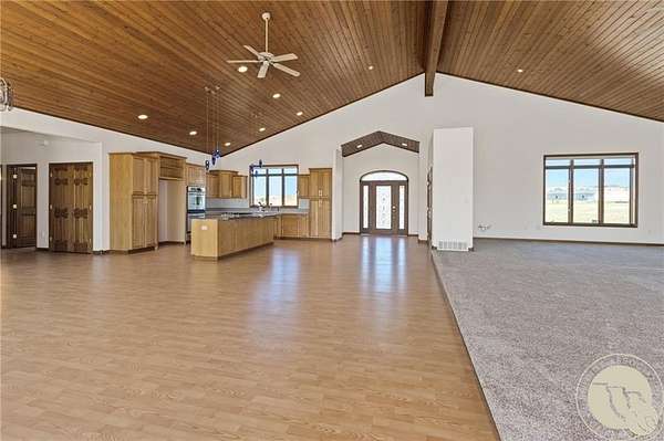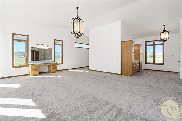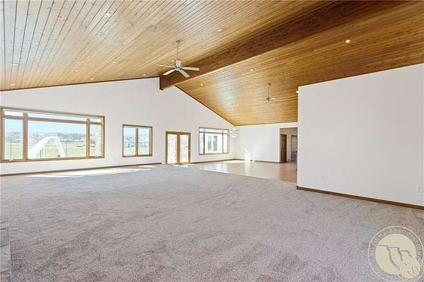 This stunning property sits on a spacious 5-acre lot and offers the perfect blend of comfort, elegance, and functionality. Step inside to soaring vaulted ceilings in the entry and main living areas, creating an airy, light-filled atmosphere. All-new windows and fresh bright white paint throughout make every space feel crisp, clean, and inviting. At the heart of the home, the modern chef's kitchen shines with granite countertops, abundant storage, and a large island that doubles as a breakfast bar-perfect for gatherings or casual meals. The home features multiple spacious bedrooms, each designed as a peaceful retreat with large windows framing stunning views. A true highlight of the property is the expansive underground pool-ideal for relaxation, entertaining, or enjoying Montana's sunny days. Recent upgrades make this home truly move-in ready: Brand new 28-gauge red steel roof New furnaces and water heaters Fresh paint inside and out
