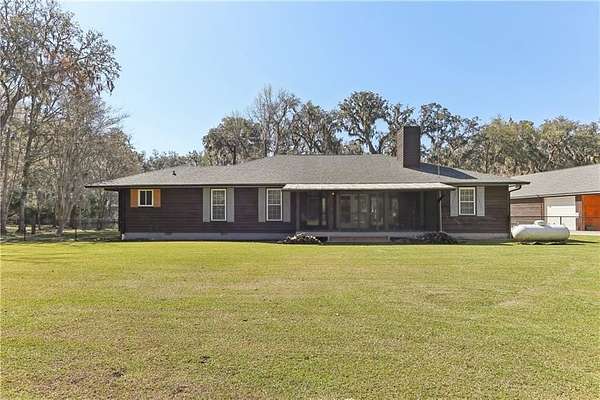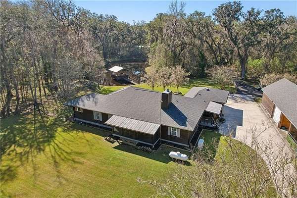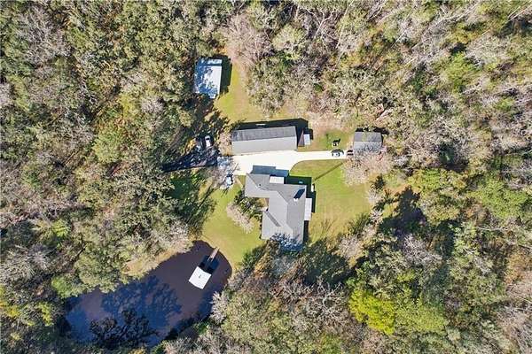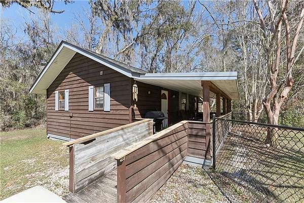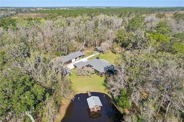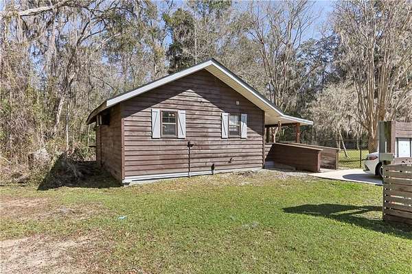 Three Parcels combine to Give you the Privacy you CRAVE Wow...Bring the whole family and all the animals and relatives! This incredible Sanctuary sits on 5.4 acres of secluded privacy, and is outside city limits but close to all. - Fish from the large, stocked pond with dock, gazebo and wood burning heat stove. This immaculate cedar sided 4 Bedroom 2 1/2 Bath is a huge 2746 Square Feet home features tongue and groove Hardwood flooring, custom updated kitchen with island, quartz countertop, stainless steel LG appliances, vaulted great room with wood burning cozy fireplace. The Spacious Primary Suite has a huge bath that features an oversized jacuzzi tub, separate shower, separate vanities, and walk in closets. Watch the deer, birds and nature in the serene screened in sunroom which spans the entire back of home and looks out over the manicured lawn. The 1/1 guest house with Paying Tenant and includes its own washer and dryer, covered rocking chair front porch and separate electrical meter. The huge, covered barn has power for all your shop projects, The Generac generator has recently been installed to get you through any storm and is fueled by propane. If you're looking for seclusion without being too far from schools shopping, and I95, this home is a must see!! Seller willing to Carry Financing Long Term Tenant in Separate Bungalow unit Paying $1,000 a month, Verifiable Tenant willing to vacate.