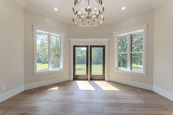 This home has the WOW factor! Newly constructed, one-story custom-built home just minutes from the TN River & public boat ramp. Featuring approx. 3,200 sqft, 4 bedrooms each w/private luxury baths, & over 1,400 sqft of garage space for 3 cars. From the moment you step inside you'll notice the craftsmanship & attention to detail - wide trim moldings, rustic solid oak flooring, brushed brass accents, & designer lighting. The chef's kitchen offers custom cabinetry, stylish fixtures & abundant storage. The primary suite includes gold vein marble flooring, a huge walk-in shower w/dual heads, wall sprays, rainfall shower, & walk-in closets. Entertaining is effortless w/large covered back patio w/fireplace and dedicated outdoor entertaining area. The front & back yards are fully sodded & beautifully landscaped & accented by exterior lighting. Welcoming circular concrete drive. Situated on 4.2+/- acres w/high-speed internet, city water, natural gas, and more--this home checks all the boxes!