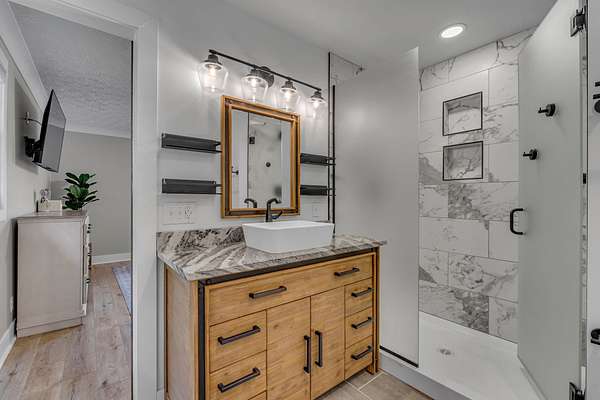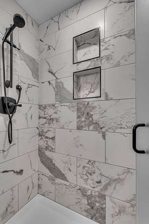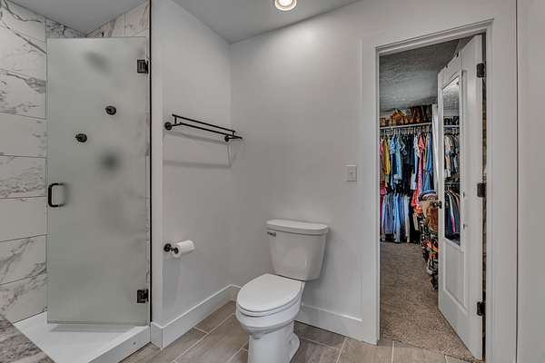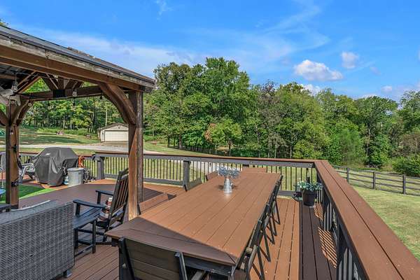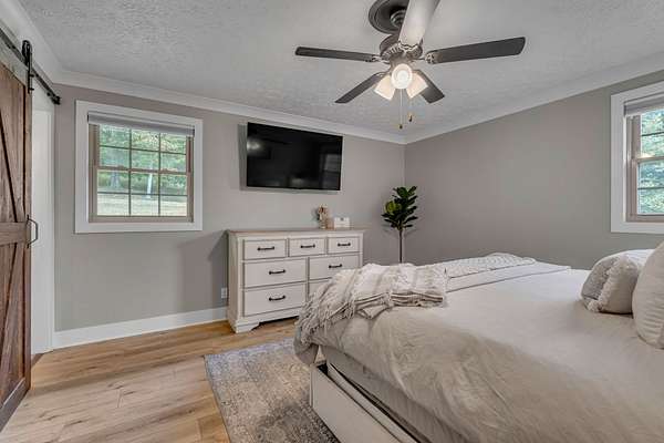 The primary suite feels like a private spa with its oversized walk-in shower and expansive custom closet with built-ins. Secondary bedrooms are generously sized with ample closet space. Outdoors, a Trex deck and pergola overlook stunning wooded countryside--perfect for entertaining or unwinding.