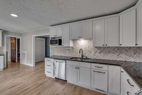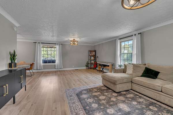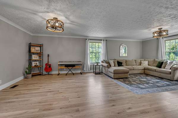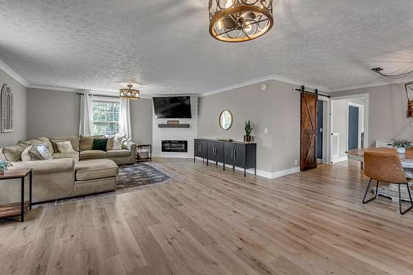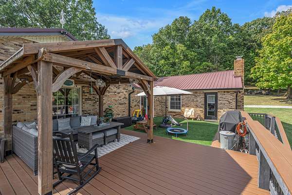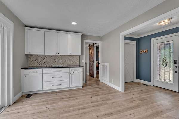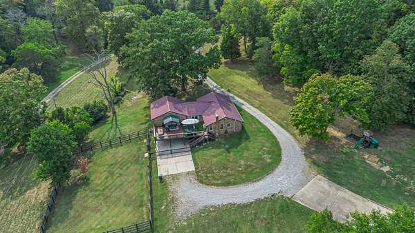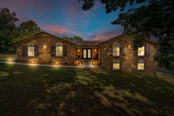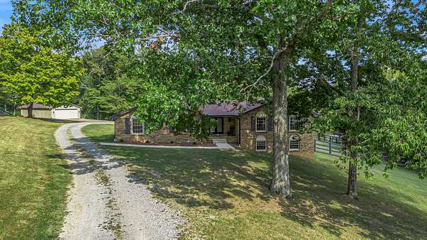 Discover country living at its finest in this beautifully renovated all-brick ranch with metal roof and unfinished basement, perfectly situated on 12.77 picturesque acres featuring a serene pond and a detached shop with a half bath. Stylish LVP flooring runs throughout, blending modern updates with timeless charm.