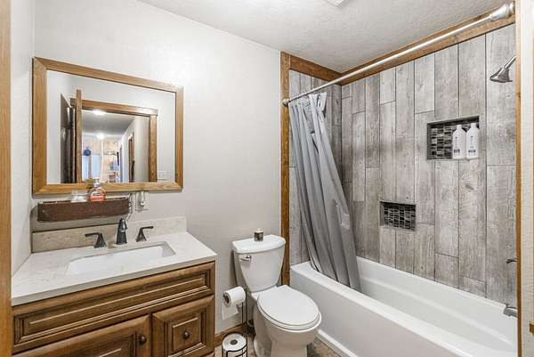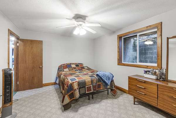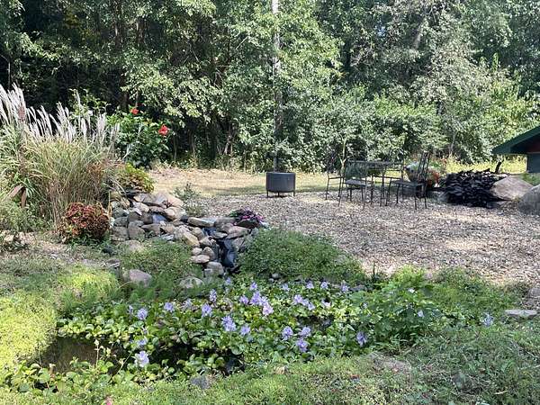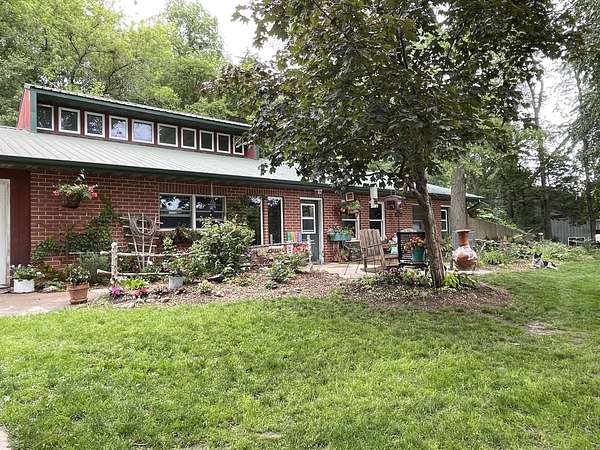 The 4-bedroom, 2-bath berm home, built in 1998, is tucked into a hillside and surrounded by timber for privacy and energy efficiency. The home features an open living room and kitchen, in-floor heat, wood burner, no-step entry, attached 2-car garage, remodeled bathrooms (2015), and a new water heater (2023). Outdoor amenities include a large vegetable garden, flower beds, and a decorative pond.